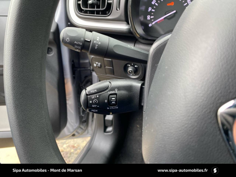 ABS avec REF, AFU et ESP / Bandeau de planche de bord Noir Brillant / Détection de sous-gonflage / Enjoliveurs 15" CLIC / Kit de dépannage provisoire de pneumatiques / Mirror Screen / My Citroën Assist: Citroën Connect Box avec pack SOS et assistance inclus / MyCitroën Drive navigation sur tablette tactile 7'': comprend le système de navigation TomTom, la reconnaissance vocale et durant 3 ans les services MyCitroën Drive (inclut les services « Zones de danger », « Info Trafic », « Stations-service », « Parkings », « Météo » et « Recherche locale ») / Pack Safety / Pack Safety 2 / Pack Visibilité / Poignées de portes extérieures couleur caisse / Sans Airbump Black / Suppression des élargisseurs d'ailes et des bas de caisse Noir Mat / Système audio numérique (DAB) MP3 6 HP / Tissu Mica Grey