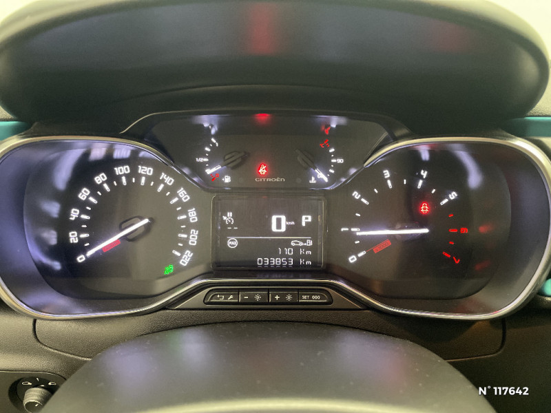 Toit Noir Onyx / Citroën Connect Nav sur tablette tactile 7'': comprend le système de navigation TomTom, la reconnaissance vocale et durant 3 ans les services Connect Nav (inclut les services « Zones de danger », « Info Trafic », « Stations-service », « Parkings », « Météo » et « Recherche locale ») / Pack Visibilité / Système audio numérique (DAB) MP3 6 HP / Pack Color Noir / Volant en croûte de cuir / Enjoliveurs 3D 16" STEEL & DESIGN / Bandeau de planche de bord Noir Brillant / Elargisseurs d?ailes et bas de caisse Noir Mat / Airbump Black avec gélule Blanc Banquise / Mirror Screen / Tissu Mica Grey / Détection de sous-gonflage / ABS avec REF, AFU et ESP / Lève-vitres AV séquentiels / MyCitroën Play Mirror Screen, Système audio numérique MP3 6 HP (DAB), Tablette tactile 7'' / Kit de dépannage provisoire de pneumatiques / MyCitroën Drive navigation sur tablette tactile 7'': comprend le système de navigation TomTom, la reconnaissance vocale et durant 3 ans les services MyCitroën Drive (inclut les services « Zones de danger », « Info Trafic », « Stations-service », « Parkings », « Météo » et « Recherche locale ») / Poignées de portes extérieures couleur caisse / Pommeau de levier de vitesse en croûte de cuir / Pack Safety