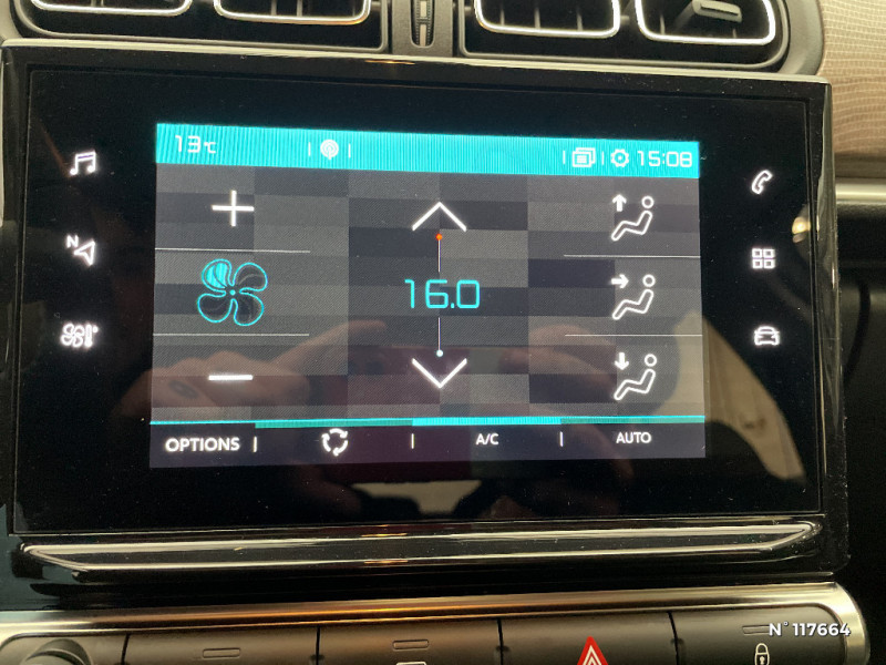 Kit de dépannage provisoire de pneumatiques / ABS + REF + AFU / Toit bi-ton Noir Onyx / Citroën Connect Nav sur tablette tactile 7'': comprend le système de navigation TomTom, la reconnaissance vocale et durant 3 ans les services Connect Nav (inclut les services « Zones de danger », « Info Trafic », « Stations-service », « Parkings », « Météo » et « Recherche locale ») / Jantes alliage 16" MATRIX diamantées / Allumage des feux de détresse en cas de forte décélération / Mirror Screen / Poignées de portes extérieures couleur caisse / Pack Safety / Pack Visibilité / Volant en croûte de cuir / Pack Color Noir / Pavillon bi-ton avec coques de rétroviseurs couleur pavillon et adhésifs de custodes avec motif / Plafonnier AV à lampes avec lecteurs de cartes / Sécurité enfants mécanique / Clignotants impulsionnels / Détection de sous-gonflage / Tissu Mica Grey / Climatisation automatique avec fonction filtrage de l'air / Lève-vitres AR manuels / Pare-soleil avec miroir occultable côtés conducteur et passager / Système audio numérique (DAB) MP3 6 HP / Coques de rétroviseurs couleur pavillon / Elargisseurs d?ailes et bas de caisse / Feux AR à effet 3D / Accoudoirs de panneaux de portes textile avec sangle / Bandeau de planche de bord Noir Brillant avec cerclage Chrome Satin / Décors extérieurs Noir Brillant