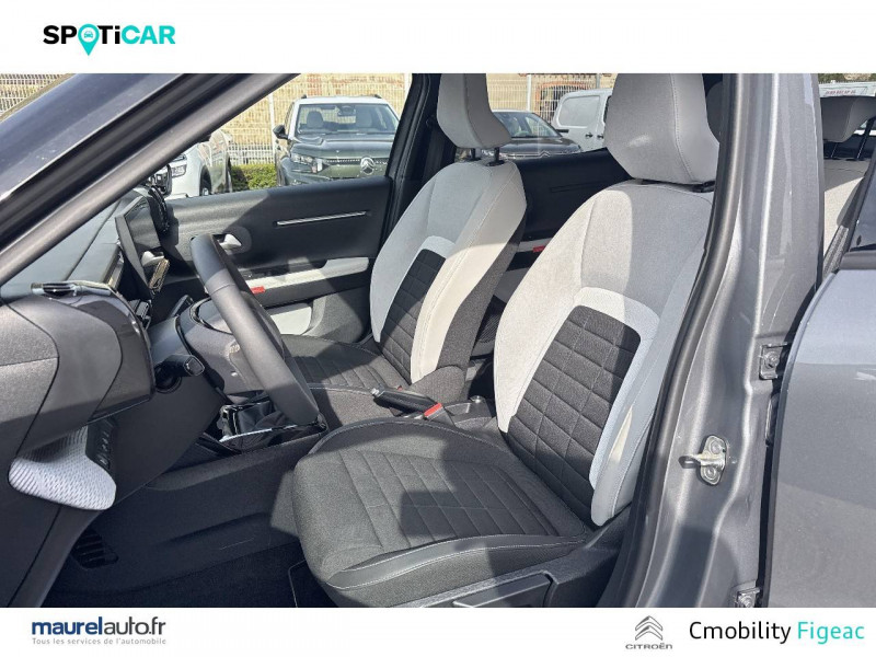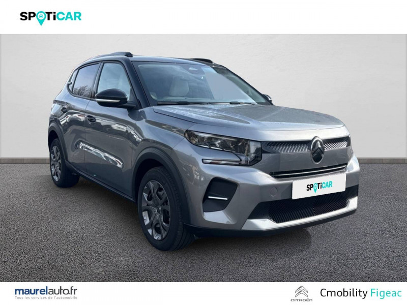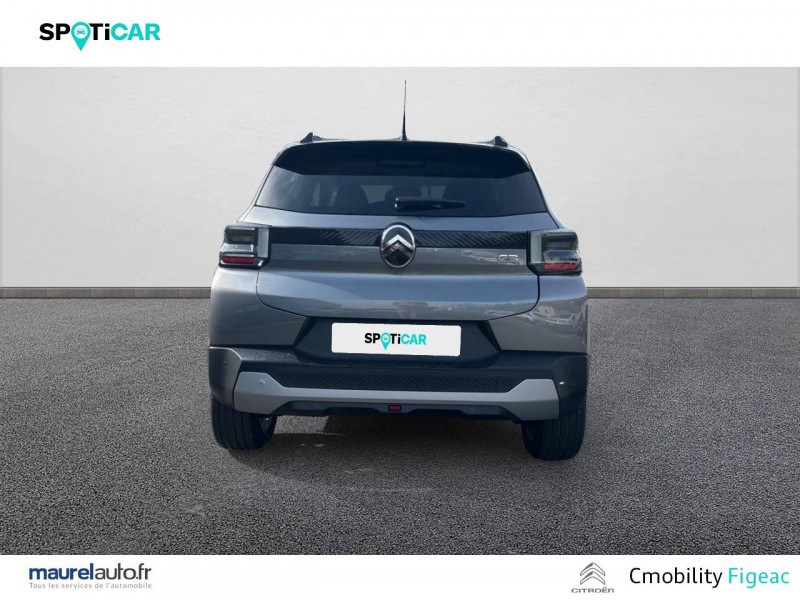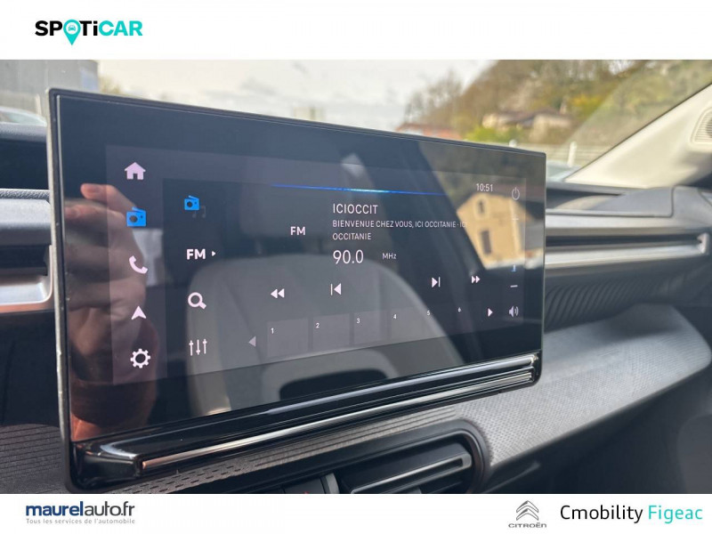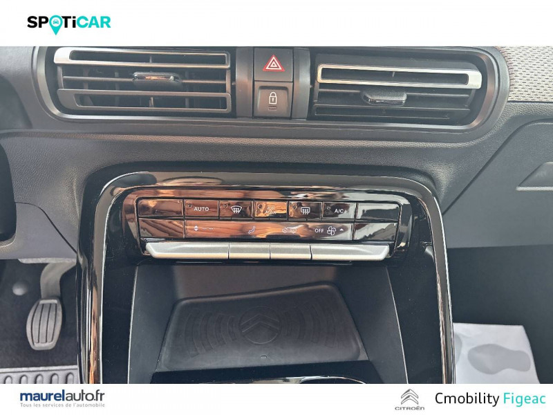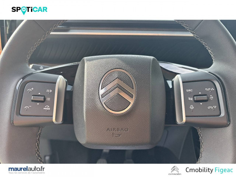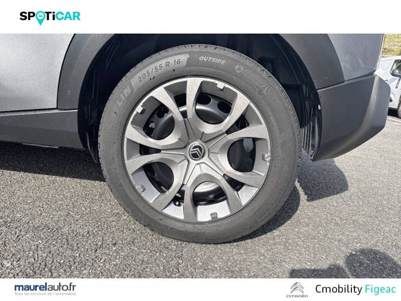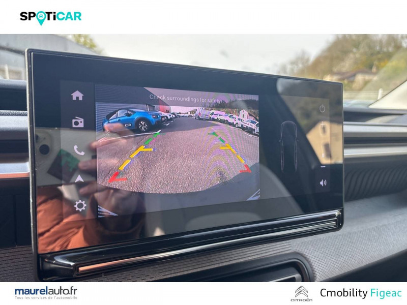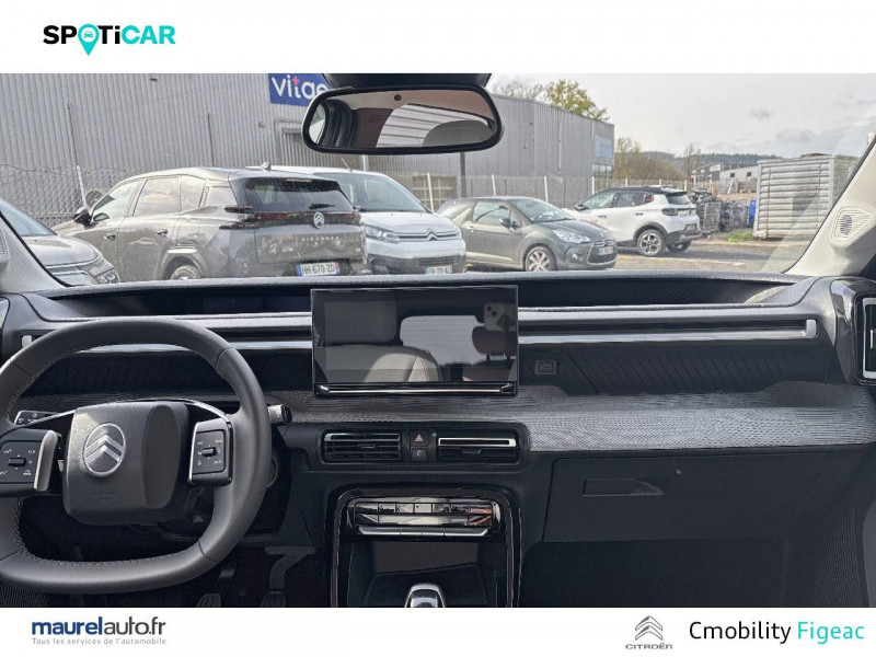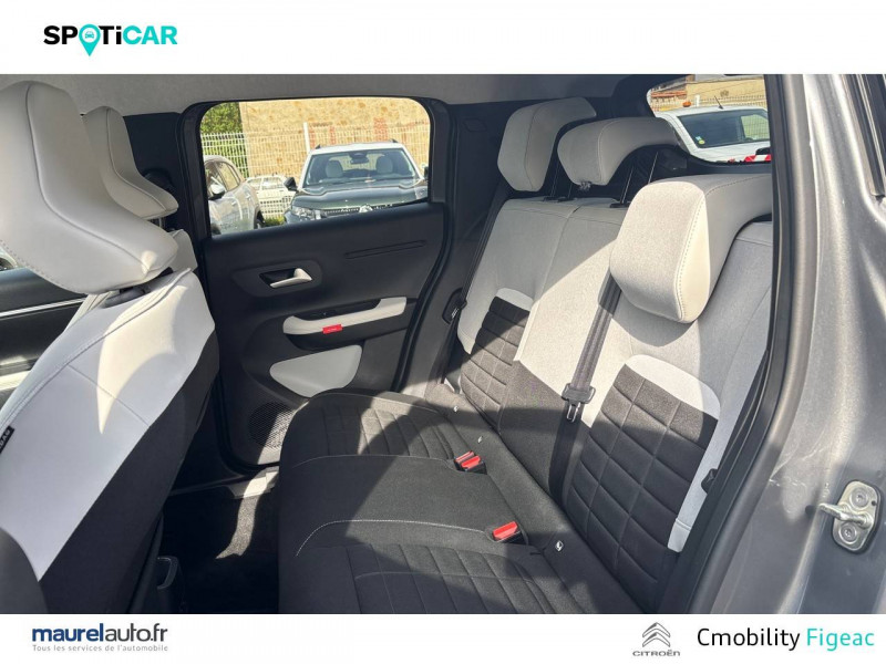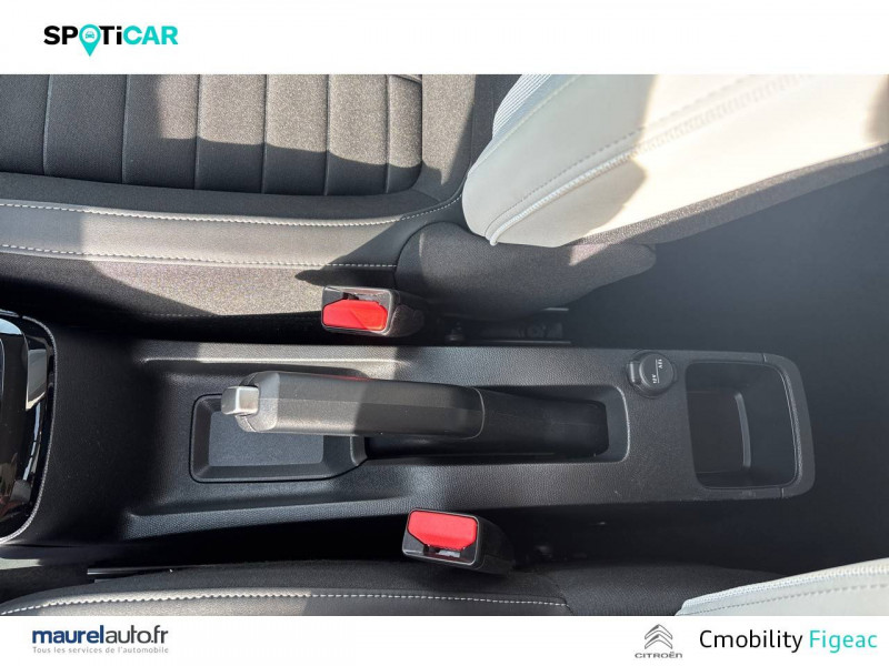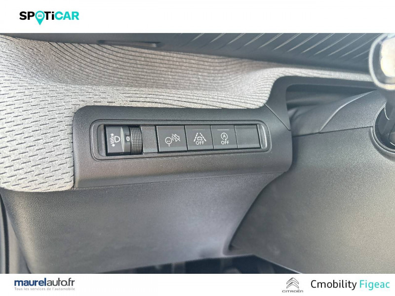 1 prise USB -C sur la planche de bord (charge rapide 3A) / 2 Prises USB type-C (charge rapide 3A) en rang 2 / ABS, ESP / AFU, REF / Ambiance Metropolitan Grey - Accoudoirs de porte AV et AR recouverts de textile moussé avec étiquette "Happy Tags" (messages positifs), - Appui-têtes AV réglables en hauteur, - Décors sur les panneaux de porte AV Gris Sidérite, - Décors sur la planche de bord Gris Sidérite, - Poches aumônières et poches supplémentaires pour smartphone au dos des sièges AV / Barres de toit Noir Brillant / Boîte manuelle 6 rapports / Boîtier télématique: Appel d'urgence et Citroën Assistance les services Connect ONE pendant une période de 10 ans / Citroën Head up Display (affichage tête haute) - TFT / Commutation automatique des feux de route / Décors extérieurs Noir Brillant (enjoliveurs de montant central et custode) / Détection de sous-gonflage / Ecran central 10,25 " tactile: Système audio 6 HPs (DAB). Apple CarPlay et Android Auto sans fil / Elargisseurs d'ailes Noir Mat / Enjoliveurs 17" AZURITE / Essuie-vitre AV automatique (capteur de pluie) / Garnissage Tissu Noir / Tissu City / Toile enduite Claire avec Sièges Advanced Comfort / Jantes alliage 17" Atacamite diamantées / Lève-vitres AR électriques (descente séquentielle) / Lève-vitres AV électriques (descente séquentielle) / Navigation 3D Connecté sur écran central 10,25" tactile / Pack Safety - Active Safety Brake (Freinage automatique d'urgence) - Alerte active de Franchissement Involontaire de Ligne - Alerte Attention Conducteur - Reconnaissance des panneaux de signalisation - Régulateur-limiteur de vitesse / Poignées de portes extérieures Noir Brillant / Recharge sans fil pour smartphone / Rétroviseur intérieur électrochrome / Sabots de protection AV et AR / Suspension Citroën Advanced Comfort / TCS (Contrôle de la traction) / Témoin et alerte de non-bouclage des ceintures AV et de débouclage AV et AR