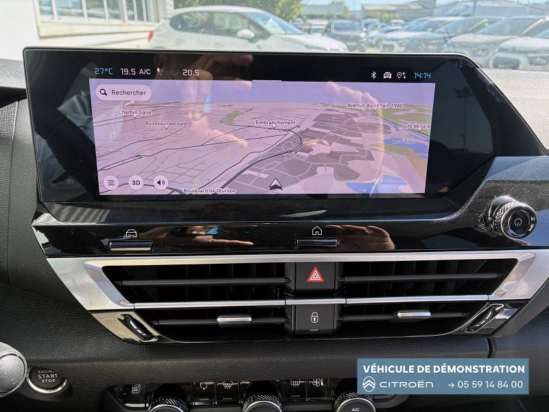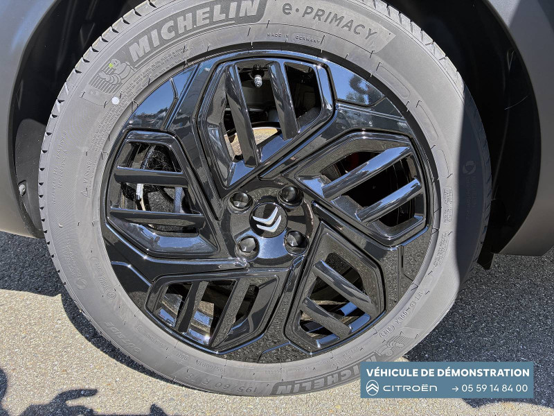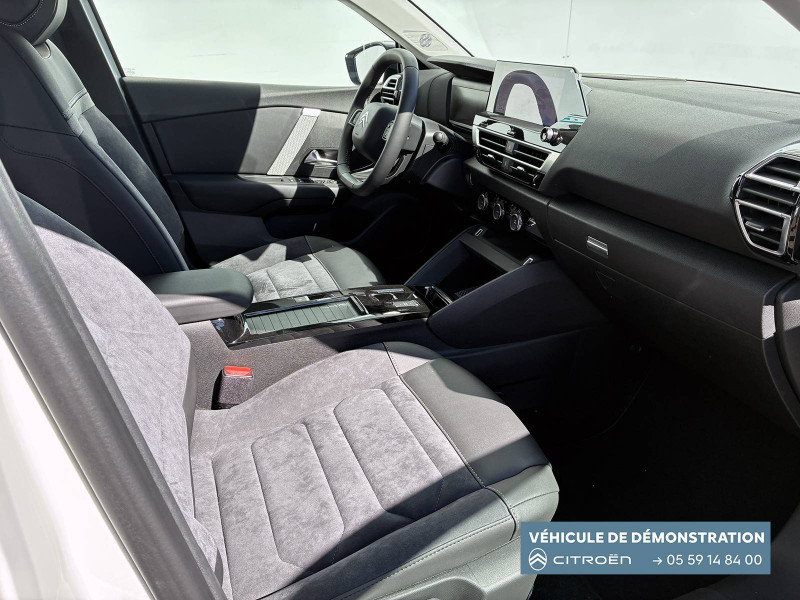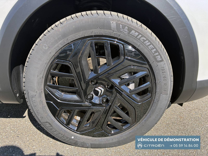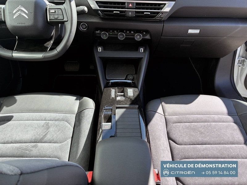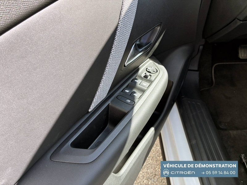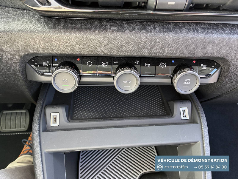 2 prises USB au rang 1 (1 type C + 1 type A) / 2 prises USB au rang 2 (1 type C + 1 type A) / ABS avec REF, AFU et ESP / Aérateurs centraux en rang 2 / Avertisseur sonore piéton / Câble de recharge Mode 3 triphasé 3x32A pour prise de charge T2, longueur 6 mètres / Chargeur embarqué 7.4 kW monophasé / Combiné numérique couleur avec rétro-éclairage / Commutation automatique des feux de route / Console centrale haute avec rangements et accoudoir / Décor Bleu sur les panneaux intérieurs de porte / Détection de sous-gonflage / Eclairage d'accompagnement sous les rétroviseurs extérieurs / Elargisseurs d'aile et bas de caisse Noir Mat / e-Solutions Charging / Essuie-vitre AV automatique (capteur de pluie) / Frein de stationnement électrique automatique / Garnissage textile effet cuir Noir/Tissu Gris Ambiance Metropolitan Grey + Sièges Advanced Comfort / Jantes alliage 18" CROSSLIGHT Diamantées / Jupe AR Noir Brilliant / Kit de dépannage provisoire de pneumatiques / My Citroën Assist: Citroën Connect Box avec Pack SOS et assistance inclus / My Citroën Drive Plus: navigation sur tablette tactile 10'' comprend le système de navigation 3D TomTom, la reconnaissance vocale avec langage naturel, l'interface personnalisable, et durant 3 ans les services My Citroën Drive Plus (inclut les services «Zones de danger», «Info Trafic», «Stations-service», «Parkings, «Météo» et «Recherche locale») / My Citroën Play - Mirror Screen sans fils, compatible Android Auto et Apple CarPlay, Système audio numérique (DAB) MP3 6 HP,Tablette tactile 10" / Pack Color Anodised Blue / Pack Drive Assist Aide au stationnement AV et latéral, Commutation automatique des feux de route, Régulateur de vitesse adaptatif avec fonction Stop & Go,Système de surveillance d'angle mort / Pack Safety 2 / Pack Safety - Active Safety Brake - Alerte active de Franchissement Involontaire de Ligne - Alerte Attention Conducteur - Alerte Risque Collision - Coffee Break Alert - Reconnaissance des panneaux de vitesse et recommandation - Régulateur-limiteur de vitesse - Témoin de non-bouclage des ceintures de sécurité conducteur et passagers / Poche aumônière au dos des sièges AV / Poignées de portes extérieures couleur caisse / Préconditionnement thermique / Prise 12 V en rang 1 / Projecteurs antibrouillard LED avec éclairage statique d'intersection / Projecteurs LED avec signature lumineuse en V / Rétroviseur intérieur électrochrome / Siège conducteur avec réglage lombaire / Sièges Advanced Comfort / Smart Pad Support Citroen / Suspension Citroën Advanced Comfort / Tiroir de planche de bord / Top Rear Vision (caméra de recul avec visualisation 180° sur tablette) / Volant chauffant / Volant cuir pleine fleur