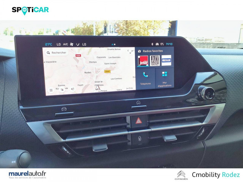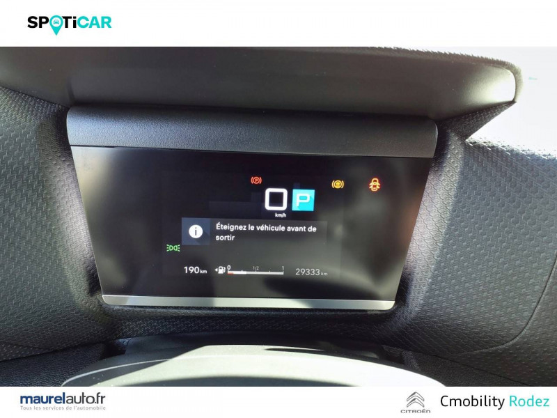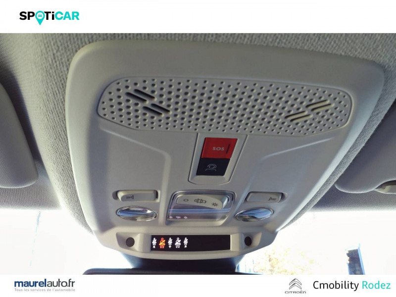 1 prise USB en rang 2 (type A) / 2 prises USB au rang 1 (1 type C + 1 type A) / ABS avec REF, AFU et ESP / Accès et démarrage mains libres Proximity / Aérateurs centraux en rang 2 / Combiné numérique couleur avec rétro-éclairage / Commutation automatique des feux de route / Console centrale haute avec rangements et accoudoir / Détection de sous-gonflage / Eclairage d'accompagnement sous les rétroviseurs extérieurs / Elargisseurs d'aile et bas de caisse Noir Mat / Essuie-vitre AV automatique (capteur de pluie) / Frein de stationnement électrique automatique / Garnissage textile effet cuir Noir/Tissu Gris Ambiance Metropolitan Grey + Sièges Advanced Comfort / Jantes alliage 18" AEROBLADE Diamantées / Jupe AR Noir Brilliant / Kit de dépannage provisoire de pneumatiques / My Citroën Assist: Citroën Connect Box avec Pack SOS et assistance inclus / My Citroën Drive Plus: navigation sur tablette tactile 10'' comprend le système de navigation 3D TomTom, la reconnaissance vocale avec langage naturel, l'interface personnalisable, et durant 3 ans les services My Citroën Drive Plus (inclut les services «Zones de danger», «Info Trafic», «Stations-service», «Parkings, «Météo» et «Recherche locale») / My Citroën Play - Mirror Screen sans fils, compatible Android Auto et Apple CarPlay, Système audio numérique (DAB) MP3 6 HP,Tablette tactile 10" / Pack Color Glossy Silver / Pack Drive Assist Aide au stationnement AV et latéral, Commutation automatique des feux de route, Régulateur de vitesse adaptatif avec fonction Stop & Go,Système de surveillance d'angle mort / Pack Safety 2 / Pack Safety - Active Safety Brake - Alerte active de Franchissement Involontaire de Ligne - Alerte Attention Conducteur - Alerte Risque Collision - Coffee Break Alert - Reconnaissance des panneaux de vitesse et recommandation - Régulateur-limiteur de vitesse - Témoin de non-bouclage des ceintures de sécurité conducteur et passagers / Poche aumônière au dos des sièges AV / Poignées de portes extérieures couleur caisse / Prise 12 V en rang 1 / Projecteurs antibrouillard LED avec éclairage statique d'intersection / Projecteurs LED avec signature lumineuse en V / Rétroviseur intérieur électrochrome / Siège conducteur avec réglage lombaire et accoudoir / Sièges Advanced Comfort / Smart Pad Support Citroen / Suspension Citroën Advanced Comfort / Tiroir de planche de bord / Top Rear Vision (caméra de recul avec visualisation 180° sur tablette) / Volant cuir pleine fleur