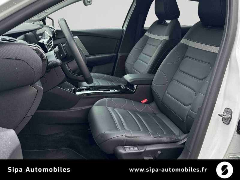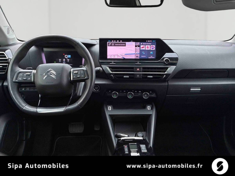 1 prise USB en rang 2 (type A) / 2 prises USB au rang 1 (1 type C + 1 type A) / ABS avec REF, AFU et ESP / Accès et démarrage mains libres Proximity 2 Télécommandes 3 boutons (verrouillage, coffre et déverrouillage). / Aérateurs centraux en rang 2 / Combiné numérique couleur avec rétro-éclairage / Console centrale haute avec rangements et accoudoir / Détection de sous-gonflage / Eclairage d'accompagnement sous les rétroviseurs extérieurs / Elargisseurs d'aile et bas de caisse Noir Mat / Essuie-vitre AV automatique (capteur de pluie) / Frein de stationnement électrique automatique / Garnissage textile effet cuir Noir/Tissu Gris Ambiance Metropolitan Grey + Sièges Advanced Comfort / Jantes alliage 18" AEROBLADE Diamantées / Jupe AR Noir Brilliant / Kit de dépannage provisoire de pneumatiques / My Citroën Assist: Citroën Connect Box avec Pack SOS et assistance inclus / My Citroën Drive Plus: navigation sur tablette tactile 10'' comprend le système de navigation 3D TomTom, la reconnaissance vocale avec langage naturel, l'interface personnalisable, et durant 3 ans les services My Citroën Drive Plus (inclut les services «Zones de danger», «Info Trafic», «Stations-service», «Parkings, «Météo» et «Recherche locale») / My Citroën Play - Mirror Screen sans fils, compatible Android Auto et Apple CarPlay, Système audio numérique (DAB) MP3 6 HP,Tablette tactile 10" / Pack Access & Nav Accès et démarrage mains libres Proximity.Combiné numérique couleur avec rétro-éclairage.Fonction Top Rear Vision de la caméra de recul.My Citroën Drive Plus : navigation sur tablette tactile 10'' Tiroir de planche de bord / Pack Color Silver / Pack Drive Assist Aide au stationnement AV et latéral, Commutation automatique des feux de route, Régulateur de vitesse adaptatif avec fonction Stop & Go,Système de surveillance d'angle mort / Pack Safety 2 / Pack Safety - Active Safety Brake - Alerte active de Franchissement Involontaire de Ligne - Alerte Attention Conducteur - Alerte Risque Collision - Coffee Break Alert - Reconnaissance des panneaux de vitesse et recommandation - Régulateur-limiteur de vitesse - Témoin de non-bouclage des ceintures de sécurité conducteur et passagers / Poche aumônière au dos des sièges AV / Poignées de portes extérieures couleur caisse / Prise 12 V en rang 1 / Projecteurs antibrouillard LED avec éclairage statique d'intersection / Projecteurs LED avec signature lumineuse en V / Rétroviseur intérieur électrochrome / Services Connect PLUS Comprend les services Connect Plus pour une période de 1 an / Siège conducteur avec réglage lombaire / Sièges Advanced Comfort / Smart Pad Support Citroen / Suspension Citroën Advanced Comfort / Tiroir de planche de bord / Top Rear Vision de la caméra de recul / Volant cuir pleine fleur