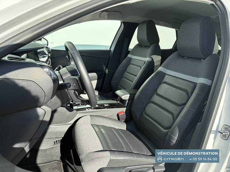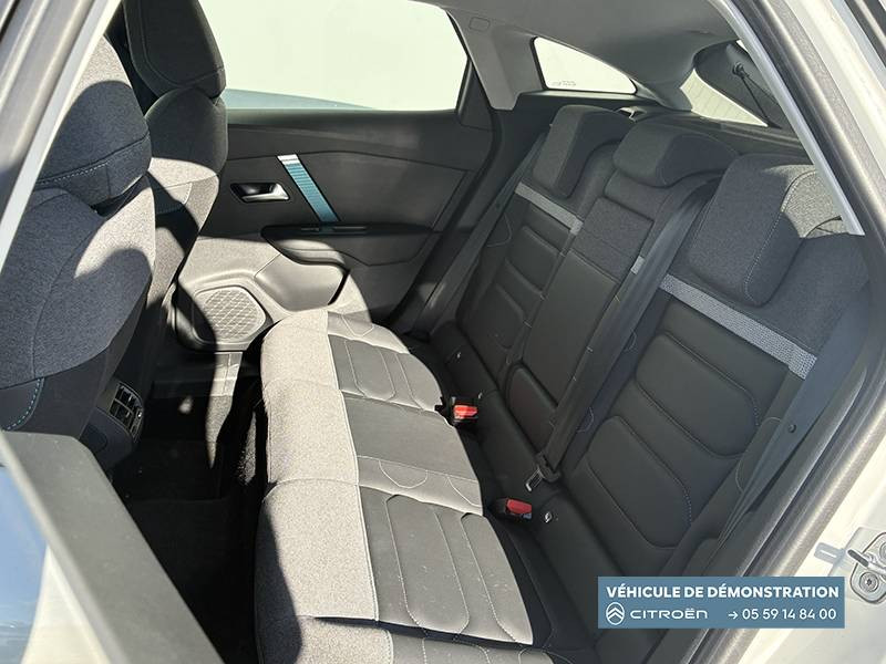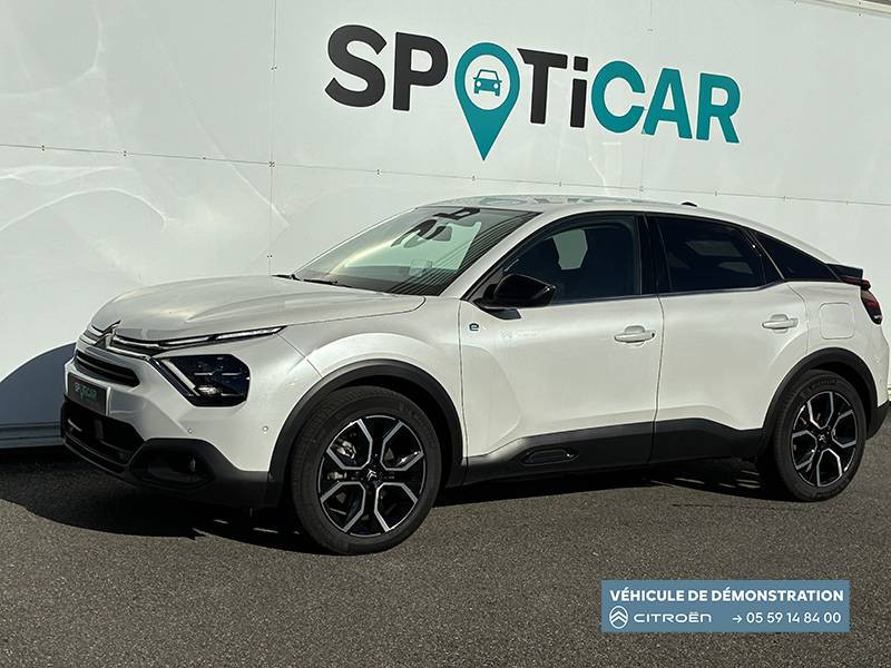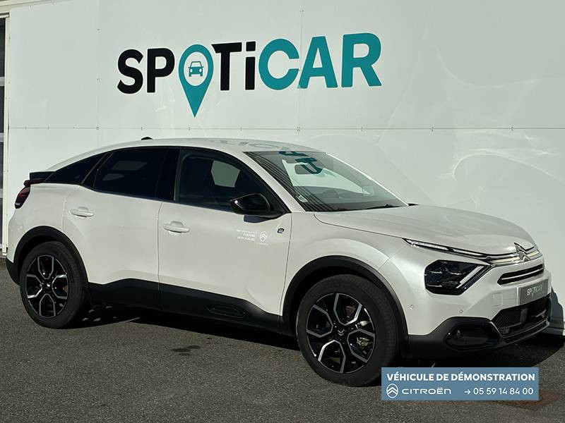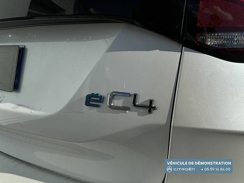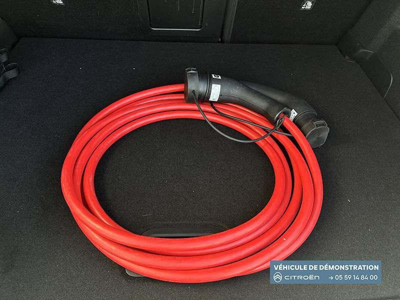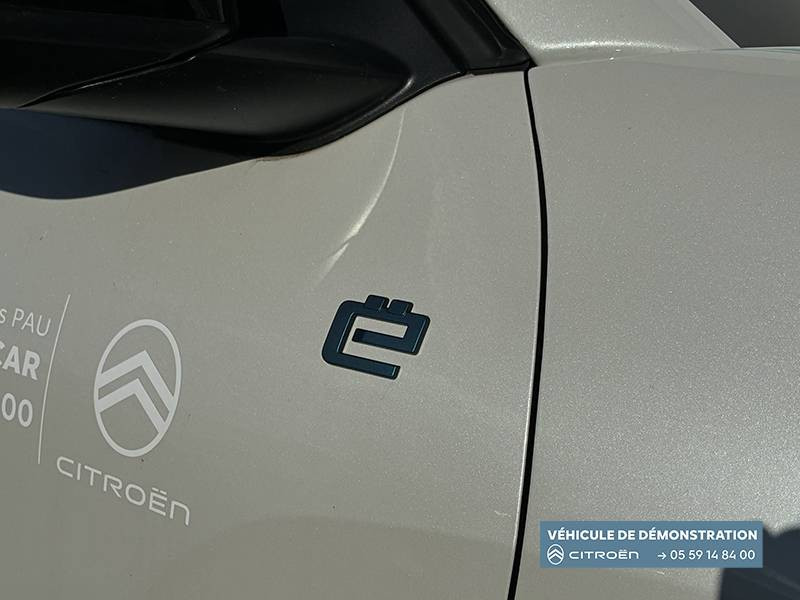2 prises USB au rang 1 (1 type C + 1 type A) / 2 prises USB au rang 2 (1 type C + 1 type A) / ABS avec REF, AFU et ESP / Aérateurs centraux en rang 2 / Avertisseur sonore piéton / Câble de recharge Mode 3 triphasé 3x32A pour prise de charge T2, longueur 6 mètres / Chargeur embarqué 7.4 kW monophasé / Combiné numérique couleur avec rétro-éclairage / Commutateur automatique des feux de route / Console centrale haute avec rangements et accoudoir / Décor Bleu sur les panneaux intérieurs de porte / Détection de sous-gonflage / Eclairage d'accompagnement sous les rétroviseurs extérieurs / Elargisseurs d'aile et bas de caisse Noir Mat / e-Solutions Charging / Frein de stationnement électrique automatique / Garnissage textile effet cuir Noir/Tissu Gris Ambiance Metropolitan Grey + Sièges Advanced Comfort / Jantes alliage 18" CROSSLIGHT Diamantées / Jupe AR Noir Brilliant / Kit de dépannage provisoire de pneumatiques / My Citroën Assist : Citroën Connect Box avec Pack SOS et assistance inclus / My Citroën Drive Plus: navigation sur tablette tactile 10'' comprend le système de navigation 3D TomTom, la reconnaissance vocale avec langage naturel, l'interface personnalisable, et durant 3 ans les services My Citroën Drive Plus (inclut les services «Zones de danger», «Info Trafic», «Stations-service», «Parkings, «Météo» et «Recherche locale») / My Citroën Play - Mirror Screen sans fils, compatible Android Auto et Apple CarPlay, Système audio numérique (DAB) MP3 6 HP,Tablette tactile 10" / Pack Color Anodised Blue / Pack Drive Assist Aide au stationnement AV et latéral, Commutation automatique des feux de route, Régulateur de vitesse adaptatif avec fonction Stop & Go,Système de surveillance d'angle mort / Pack Safety 2 / Pack Safety - Active Safety Brake - Alerte active de Franchissement Involontaire de Ligne - Alerte Attention Conducteur - Alerte Risque Collision - Coffee Break Alert - Reconnaissance des panneaux de vitesse et recommandation - Régulateur-limiteur de vitesse - Témoin de non-bouclage des ceintures de sécurité conducteur et passagers / Pack Style Jonc chromé sur les lécheurs de vitres latérales,Vitres et lunette AR surteintées / Plancher de coffre à 2 positions / Poche aumonière au dos des sièges AV / Poignées de portes extérieures couleur caisse / Préconditionnement thermique / Prise 12 V en rang 1 / Projecteurs antibrouillard LED avec éclairage statique d'intersection / Projecteurs LED avec signature lumineuse en V / Rétroviseur intérieur électrochrome / Siège passager avec réglage lombaire / Sièges Advanced Comfort / Smart Pad Support Citroen / Suspension Citroën Advanced Comfort / Tiroir de planche de bord / Top Rear Vision (caméra de recul avec visualisation 180° sur tablette) / Volant chauffant / Volant cuir pleine fleur