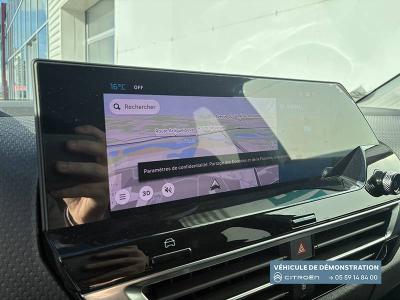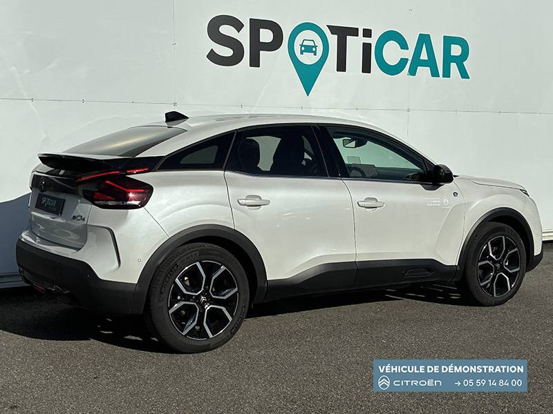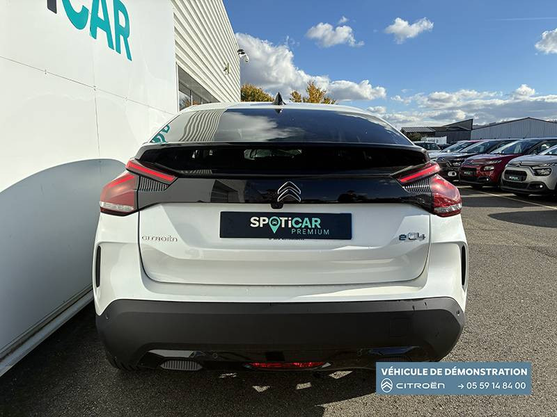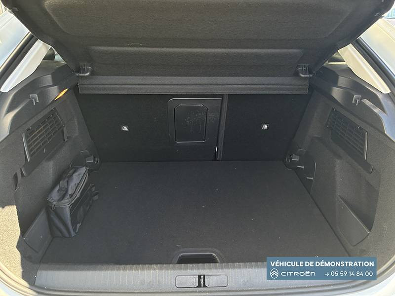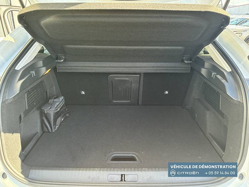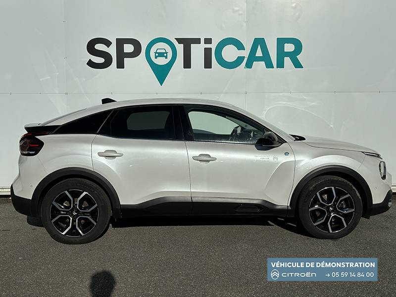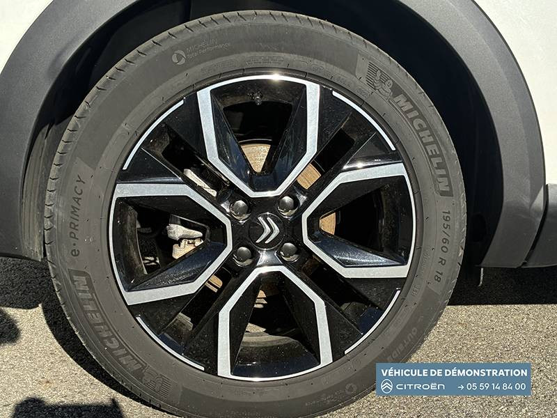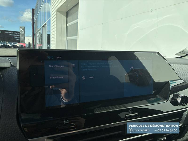 2 prises USB au rang 1 (1 type C + 1 type A) / 2 prises USB au rang 2 (1 type C + 1 type A) / ABS avec REF, AFU et ESP / Aérateurs centraux en rang 2 / Avertisseur sonore piéton / Câble de recharge Mode 3 triphasé 3x32A pour prise de charge T2, longueur 6 mètres / Chargeur embarqué 7.4 kW monophasé / Combiné numérique couleur avec rétro-éclairage / Commutateur automatique des feux de route / Console centrale haute avec rangements et accoudoir / Décor Bleu sur les panneaux intérieurs de porte / Détection de sous-gonflage / Eclairage d'accompagnement sous les rétroviseurs extérieurs / Elargisseurs d'aile et bas de caisse Noir Mat / e-Solutions Charging / Frein de stationnement électrique automatique / Garnissage textile effet cuir Noir/Tissu Gris Ambiance Metropolitan Grey + Sièges Advanced Comfort / Jantes alliage 18" CROSSLIGHT Diamantées / Jupe AR Noir Brilliant / Kit de dépannage provisoire de pneumatiques / My Citroën Assist : Citroën Connect Box avec Pack SOS et assistance inclus / My Citroën Drive Plus: navigation sur tablette tactile 10'' comprend le système de navigation 3D TomTom, la reconnaissance vocale avec langage naturel, l'interface personnalisable, et durant 3 ans les services My Citroën Drive Plus (inclut les services «Zones de danger», «Info Trafic», «Stations-service», «Parkings, «Météo» et «Recherche locale») / My Citroën Play - Mirror Screen sans fils, compatible Android Auto et Apple CarPlay, Système audio numérique (DAB) MP3 6 HP,Tablette tactile 10" / Pack Color Anodised Blue / Pack Drive Assist Aide au stationnement AV et latéral, Commutation automatique des feux de route, Régulateur de vitesse adaptatif avec fonction Stop & Go,Système de surveillance d'angle mort / Pack Safety 2 / Pack Safety - Active Safety Brake - Alerte active de Franchissement Involontaire de Ligne - Alerte Attention Conducteur - Alerte Risque Collision - Coffee Break Alert - Reconnaissance des panneaux de vitesse et recommandation - Régulateur-limiteur de vitesse - Témoin de non-bouclage des ceintures de sécurité conducteur et passagers / Pack Style Jonc chromé sur les lécheurs de vitres latérales,Vitres et lunette AR surteintées / Plancher de coffre à 2 positions / Poche aumonière au dos des sièges AV / Poignées de portes extérieures couleur caisse / Préconditionnement thermique / Prise 12 V en rang 1 / Projecteurs antibrouillard LED avec éclairage statique d'intersection / Projecteurs LED avec signature lumineuse en V / Rétroviseur intérieur électrochrome / Siège passager avec réglage lombaire / Sièges Advanced Comfort / Smart Pad Support Citroen / Suspension Citroën Advanced Comfort / Tiroir de planche de bord / Top Rear Vision (caméra de recul avec visualisation 180° sur tablette) / Volant chauffant / Volant cuir pleine fleur