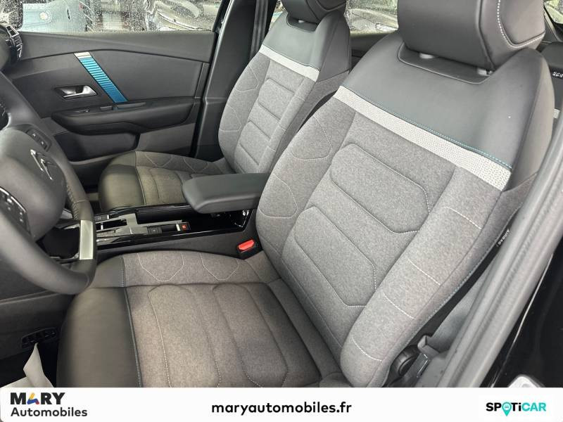 2 prises USB au rang 1 (1 type C + 1 type A) / 2 prises USB au rang 2 (1 type C + 1 type A) / ABS avec REF / AFU et ESP / Aérateurs centraux en rang 2 / latéraux AV et rideaux / Avertisseur sonore piéton / Câble de recharge Mode 3 triphasé 3x32A pour prise de charge T2 / longueur 6 mètres / Câble de recharge publique 100kW (CCS2/DC) / Chargeur embarqué 11 kW triphasé / Chargeur embarqué 7.4 kW monophasé / Combiné numérique couleur avec rétro-éclairage / Console centrale haute avec rangements et accoudoir / Coques de rétroviseurs extérieurs Noir Brillant / Décor Bleu sur les panneaux intérieurs de porte / Détection de sous-gonflage / Elargisseurs d'aile et bas de caisse Noir Mat / e-Solutions Charging / Frein de stationnement électrique automatique / Garnissage tissu Chevrons Gris/Textile effet cuir Noir Ambiance Urban Grey + Sièges Advanced Comfort / Jantes alliage 18 CROSSLIGHT Diamantées / Jupe AR Noir Brilliant / Kit de dépannage provisoire de pneumatiques / Lève-vitres AV et AR électriques et séquentiels / My Citroën Assist: Citroën Connect Box avec Pack SOS et assistance inclus / My Citroën Drive: Citroën Connect Nav numérique sur tablette tactile 10'' comprend le système de navigation TomTom / la reconnaissance vocale et durant 3 ans les services Connect Nav (inclut les services « Zones de danger » / « Info Trafic » / « Stations-service » / « Parkings » / « Météo » et « Recherche locale »). / My Citroën Play - Mirror Screen sans fils / compatible Android Auto et Apple CarPlay / Système audio numérique (DAB) MP3 6 HP / Tablette tactile 10 / Pack Color Anodised Blue / Pack Safety - Active Safety Brake - Alerte active de Franchissement Involontaire de Ligne - Alerte Attention Conducteur - Alerte Risque Collision - Coffee Break Alert - Reconnaissance des panneaux de vitesse et recommandation - Régulateur-limiteur de vitesse - Témoin de non-bouclage des ceintures de sécurité conducteur et passagers / Plancher de coffre à 2 positions / Poche aumônière au dos des sièges AV / Poignées de portes extérieures couleur caisse / Préconditionnement thermique / Prise 12 V en rang 1 / Projecteurs antibrouillard LED avec éclairage statique d'intersection / Projecteurs LED avec signature lumineuse en V / Rétroviseurs extérieurs électriques et dégivrants / Siège conducteur avec réglage lombaire et accoudoir / Siège passager réglable en hauteur / Sièges Advanced Comfort / Suspension Citroën Advanced Comfort / Teinte de caisse nacrée Noir Perla Nera / Tiroir de planche de bord / Volant croûte de cuir