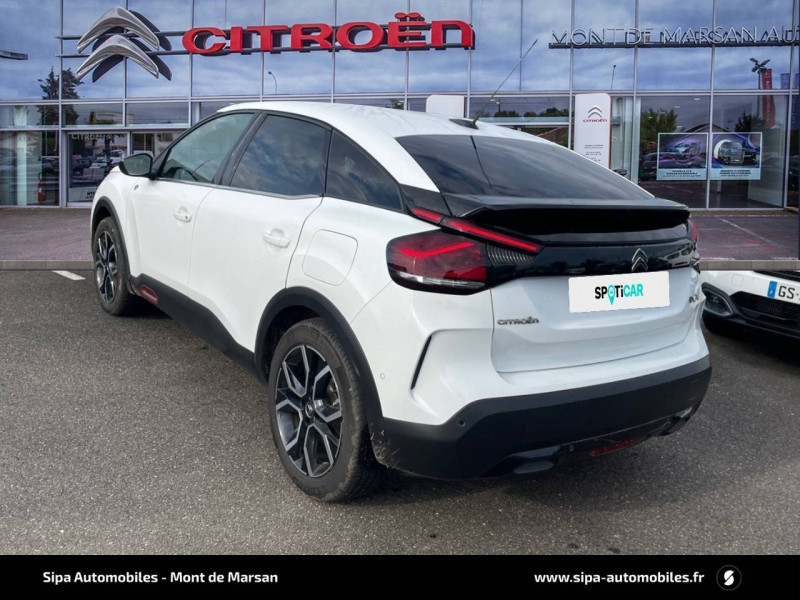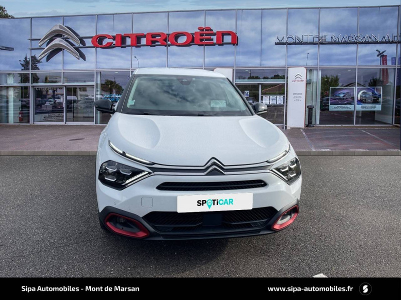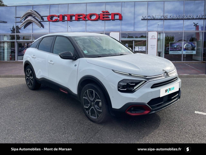 2 prises USB au rang 1 (1 type C + 1 type A) / 2 prises USB au rang 2 (1 type C + 1 type A) / ABS avec REF, AFU et ESP / Aérateurs centraux en rang 2 / Avertisseur sonore piéton / Câble de recharge Mode 2 renforcé 16A (pour prise type Green Up) / Chargeur embarqué 3,4 kW monophasé / Citroën Connect Radio numérique sur tablette tactile 10" / Combiné numérique couleur avec rétro-éclairage / Connect Assist : Citroën Connect Box avec Pack SOS et assistance inclus / Connect Nav : Citroën Connect Nav numérique sur tablette tactile 10'' comprend le système de navigation TomTom, la reconnaissance vocale et durant 3 ans les services Connect Nav (inclut les services « Zones de danger », « Info Trafic », « Stations-service », « Parkings », « Météo » et « Recherche locale »). / Connect Play : Mirror Screen / Console centrale haute avec rangements et accoudoir / Décor Bleu sur les panneaux intérieurs de porte / Détection de sous-gonflage / Elargisseurs d'aile et bas de caisse Noir Mat / e-Services Charge My Car: comprend les services "Trip Planner" et "Charging Pass" pendant 1 an / Essuie-vitre AV automatique (capteur de pluie) / Frein de stationnement électrique automatique / Garnissage tissu Chevrons Gris/Textile effet cuir Noir Ambiance Urban Grey + Sièges Advanced Comfort / Jantes alliage 18" CROSSLIGHT Diamantées / Jupe AR Noir Brilliant / Kit de dépannage provisoire de pneumatiques / Pack Color Anodised Blue / Pack Safety - Active Safety Brake - Alerte active de Franchissement Involontaire de Ligne - Alerte Attention Conducteur - Alerte Risque Collision - Coffee Break Alert - Reconnaissance des panneaux de vitesse et recommandation - Régulateur-limiteur de vitesse - Témoin de non-bouclage des ceintures de sécurité conducteur et passagers / Plancher de coffre à 2 positions / Poche aumônière au dos des sièges AV / Poignées de portes extérieures couleur caisse / Préconditionnement thermique / Prise 12 V en rang 1 / Projecteurs antibrouillard LED avec éclairage statique d'intersection / Projecteurs LED avec signature lumineuse en V / Siège conducteur avec réglage lombaire et accoudoir / Surtapis AV et AR / Suspension Citroën Advanced Comfort / Système audio numérique (DAB) MP3 6 HP / Tiroir de planche de bord