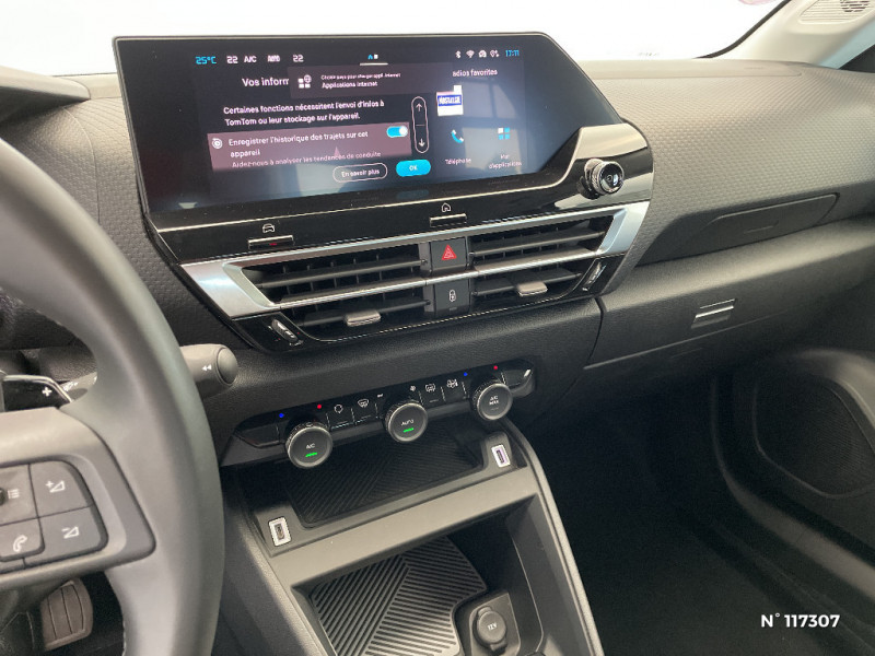 Commutateur automatique des feux de route / Mirror Screen sans fil / Aérateurs centraux en rang 2 / Prise 12V en rang 1 / Top Rear Vision (caméra de recul avec visualisation 180° sur tablette) / Jantes alliage 18" AEROBLADE Diamantées / Pack Safety 2 / Accès et démarrage mains libres Proximity / Kit de dépannage provisoire de pneumatiques / Suspension Citroën Advanced Comfort / Poche aumonière au dos des sièges AV / Frein de stationnement électrique automatique / Garnissage textile effet cuir Noir/Tissu Gris- Ambiance Metropolitan Grey + Sièges Advanced Comfort / Pack Drive Assist / Pack Safety / Volant cuir pleine fleur / Pack Access & Nav Accès et démarrage mains libres Proximity.Combiné numérique couleur avec rétro-éclairage.Fonction Top Rear Vision de la caméra de recul.My Citroën Drive Plus : navigation sur tablette tactile 10'' Tiroir de planche de bord / My Citroën Drive Plus: navigation sur tablette tactile 10'' comprend le système de navigation 3D TomTom, la reconnaissance vocale avec langage naturel, l'interface personnalisable, et durant 3 ans les services My Citroën Drive Plus (inclut les services 'Zones de danger», 'Info Trafic», 'Stations-service», 'Parkings, 'Météo» et 'Recherche locale») / Pack Color Silver / Projecteurs antibrouillard LED avec éclairage statique d'intersection / Elargisseurs d'aile et bas de caisse Noir Mat / Plancher de coffre à 2 positions / Tiroir de planche de bord / Smart Pad Support Citroen / Combiné numérique couleur avec rétro-éclairage / Projecteurs LED avec signature lumineuse en V / My Citroën Play : Kit mains libres Bluetooth, Mirror Screen sans fil, compatible Android Auto et Apple CarPlay, Système audio numérique (DAB) MP3 6 HP, Tablette tactile 10" / 2 prises USB au rang 1 (1 type C + 1 type A) / 1 prise USB en rang 2 (type A) / 2 prises USB au rang 2 (1 type C + 1 type A) / Rétroviseur intérieur électrochrome / My Citroën Assist : Citroën Connect Box avec Pack SOS et assistance inclus / Jupe AR Noir Brilliant / Tablette tactile 10" / Console centrale haute avec rangements et accoudoir / Sièges Advanced Comfort / ABS avec REF, AFU et ESP / Poignées de portes extérieures couleur caisse / Détection de sous-gonflage / Eclairage d'accompagnement sous les rétroviseurs extérieurs