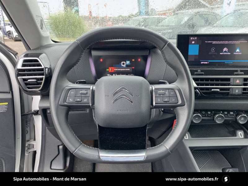 1 prise USB en rang 2 (type A) / 1 prise USB type C en rang 1 / 2 prises USB au rang 1 (1 type C + 1 type A) / ABS avec REF, AFU et ESP / Aérateurs centraux en rang 2 / Clignotants impulsionnels / Combiné numérique couleur avec rétro-éclairage / Console centrale haute avec rangements et accoudoir / Détection de sous-gonflage / Direction à assistance électrique variable / Eclairage d'accueil et d'accompagnement / Eclairage de cave à pieds AV / Elargisseurs d'aile et bas de caisse Noir Mat / Essuie-vitre AV automatique (capteur de pluie) / Frein de stationnement électrique automatique / Garnissage tissu Chevrons Gris/Textile effet cuir Noir Ambiance Urban Grey + Sièges Advanced Comfort / Jantes alliage 18" AEROBLADE Gris Anthra / Jupe AR Noir Brilliant / Kit de dépannage provisoire de pneumatiques / My Citroën Assist: Citroën Connect Box avec Pack SOS et assistance inclus / My Citroën Drive": Citroën Connect Nav numérique sur tablette tactile 10'' comprend le système de navigation TomTom, la reconnaissance vocale et durant 3 ans les services Connect Nav (inclut les services « Zones de danger », « Info Trafic », « Stations-service », « Parkings », « Météo » et « Recherche locale »). / My Citroën Play - Mirror Screen sans fils, compatible Android Auto et Apple CarPlay, Système audio numérique (DAB) MP3 6 HP,Tablette tactile 10" / Neutralisation mécanique de l'airbag passager / Pack Color Glossy Black / Pack Safety - Active Safety Brake - Alerte active de Franchissement Involontaire de Ligne - Alerte Attention Conducteur - Alerte Risque Collision - Coffee Break Alert - Reconnaissance des panneaux de vitesse et recommandation - Régulateur-limiteur de vitesse - Témoin de non-bouclage des ceintures de sécurité conducteur et passagers / Pare-soleil avec miroir occultable et éclairage à LED côtés conducteur et passager / Plafonniers AV et AR à LED / Plancher de coffre à 2 positions / Poche aumônière au dos des sièges AV / Poignées de portes extérieures couleur caisse / Prise 12 V en rang 1 / Prise USB-A en rang 1 / Prise USB-A en rang 2 / Projecteurs antibrouillard LED avec éclairage statique d'intersection / Projecteurs LED avec signature lumineuse en V / Sécurité enfants mécanique / Siège conducteur avec réglage lombaire et accoudoir / Sièges Advanced Comfort / Suspension Citroën Advanced Comfort / Système audio numérique (DAB) MP3 6 HP / Tiroir de planche de bord