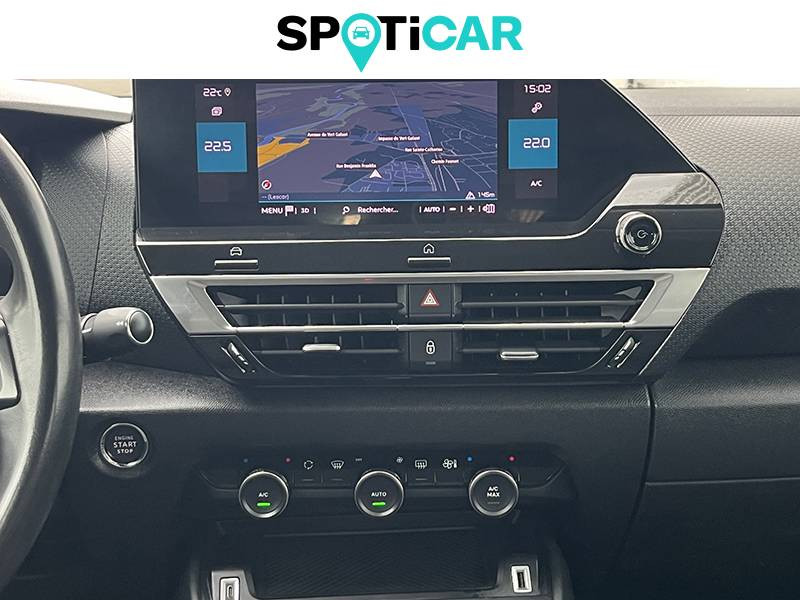 1 prise USB en rang 2 (type A) / 2 prises USB au rang 1 (1 type C + 1 type A) / ABS avec REF, AFU et ESP / Accès et démarrage mains libres Proximity / Aérateurs centraux en rang 2 / Ambiance Urban Grey: Tissu Chevrons Gris / Textile effet cuir Noir avec Sièges Advanced Comfort / Citroën Connect Radio numérique sur tablette tactile 10" / Combiné numérique couleur avec rétro-éclairage / Connect Assist : Citroën Connect Box avec Pack SOS et assistance inclus / Connect Nav : Citroën Connect Nav numérique sur tablette tactile 10'' comprend le système de navigation TomTom, la reconnaissance vocale et durant 3 ans les services Connect Nav (inclut les services « Zones de danger », « Info Trafic », « Stations-service », « Parkings », « Météo » et « Recherche locale »). / Connect Play : Mirror Screen / Console centrale haute avec rangements et accoudoir / Détection de sous-gonflage / Elargisseurs d'aile et bas de caisse Noir Mat / Frein de stationnement électrique automatique / Jantes alliage 18" AEROBLADE Gris Anthra / Jupe AR Noir Brilliant / Kit de dépannage provisoire de pneumatiques / Pack Color Glossy Black / Pack Drive Assist / Pack Safety / Pack Safety 2 / Plancher de coffre à 2 positions / Poche aumonière au dos des sièges AV / Poignées de portes extérieures couleur caisse / Prise 12V en rang 1 / Projecteurs antibrouillard LED avec éclairage statique d'intersection / Projecteurs LED avec signature lumineuse en V / Rétroviseur intérieur électrochrome / Siège conducteur avec réglage lombaire / Suspension Citroën Advanced Comfort / Système audio numérique (DAB) MP3 6 HP / Tiroir de planche de bord / Volant cuir pleine fleur