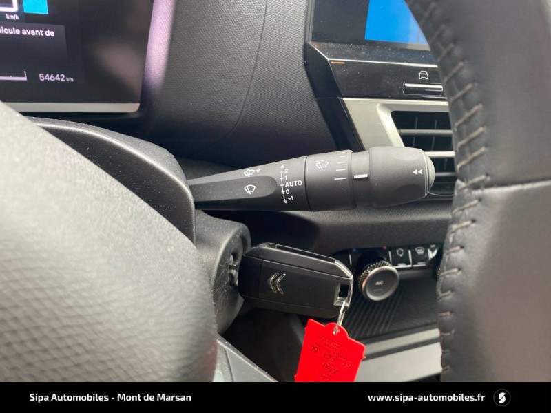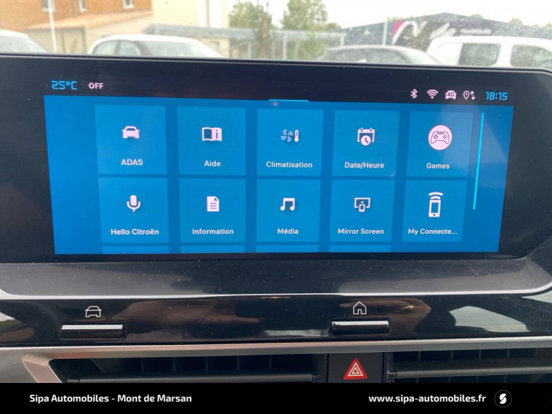 1 prise USB en rang 2 (type A) / 2 prises USB au rang 1 (1 type C + 1 type A) / ABS avec REF, AFU et ESP / Aérateurs centraux en rang 2 / Combiné numérique couleur avec rétro-éclairage / Console centrale haute avec rangements et accoudoir / Détection de sous-gonflage / Elargisseurs d'aile et bas de caisse Noir Mat / Essuie-vitre AV automatique (capteur de pluie) / Frein de stationnement électrique automatique / Garnissage tissu Chevrons Gris/Textile effet cuir Noir Ambiance Urban Grey + Sièges Advanced Comfort / Jantes alliage 18" AEROBLADE Gris Anthra / Jupe AR Noir Brilliant / Kit de dépannage provisoire de pneumatiques / My Citroën Assist : Citroën Connect Box avec Pack SOS et assistance inclus / Pack Color Glossy Black / Pack Safety - Active Safety Brake - Alerte active de Franchissement Involontaire de Ligne - Alerte Attention Conducteur - Alerte Risque Collision - Coffee Break Alert - Reconnaissance des panneaux de vitesse et recommandation - Régulateur-limiteur de vitesse - Témoin de non-bouclage des ceintures de sécurité conducteur et passagers / Plancher de coffre à 2 positions / Poche aumônière au dos des sièges AV / Poignées de portes extérieures couleur caisse / Prise 12 V en rang 1 / Projecteurs antibrouillard LED avec éclairage statique d'intersection / Projecteurs LED avec signature lumineuse en V / Siège passager avec réglage lombaire / Sièges Advanced Comfort / Suspension Citroën Advanced Comfort / Système audio numérique (DAB) MP3 6 HP / Tiroir de planche de bord