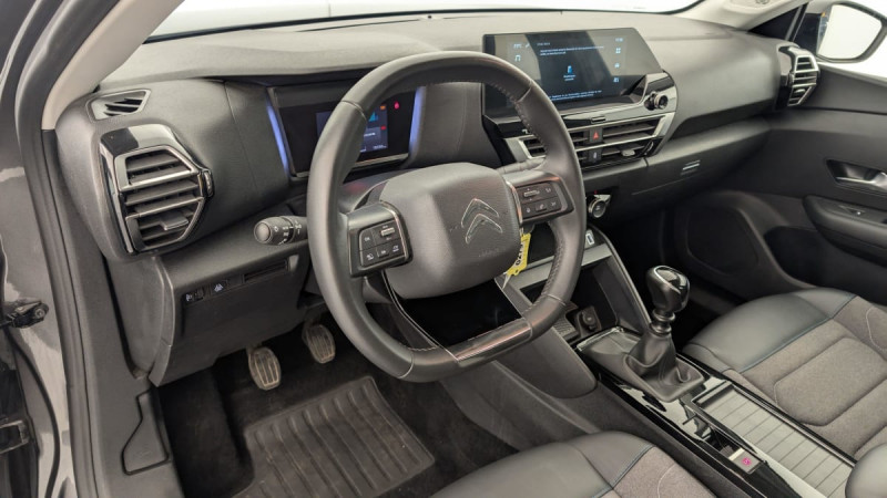 Détection de sous-gonflage / ABS avec REF, AFU et ESP / Pack Safety : Régulateur-limiteur de vitesse Coffee Break Alert Alerte attention conducteur Alerte Risque Collision Reconnaissance des panneaux de vitesse Témoin de non-bouclage des ceintures de sécurité conducteur et passagers Alerte active de Franchissement Involontaire de ligne Active Safety Brake Post Collision Safety Brake / Console centrale haute avec rangements et accoudoir / Système audio numérique (DAB) MP3 6 HP / Pack Color Glossy Black : Inserts autour des projecteurs antibrouillard et sur les protections de bas de caisse / Plancher de coffre à 2 positions / Projecteurs antibrouillard LED avec éclairage statique d'intersection / Combiné numérique couleur avec rétro-éclairage / Projecteurs LED avec signature lumineuse en V / Garnissage tissu Chevrons Gris/Textile effet cuir Noir Ambiance Urban Grey + Sièges Advanced Comfort / Prise 12 V en rang 1 / Suspension Citroën Advanced Comfort / Sièges Advanced Comfort / My Citroën Play - Mirror Screen sans fils, compatible Android Auto et Apple CarPlay, Système audio numérique (DAB) MP3 6 HP,Tablette tactile 10" / Jantes alliage 18" AEROBLADE Gris Anthra / Siège conducteur avec réglage lombaire et accoudoir / Essuie-vitre AV automatique (capteur de pluie) / Frein de stationnement électrique automatique / Kit de dépannage provisoire de pneumatiques / / Véhicules équivalents: 308 - Mégane - Golf