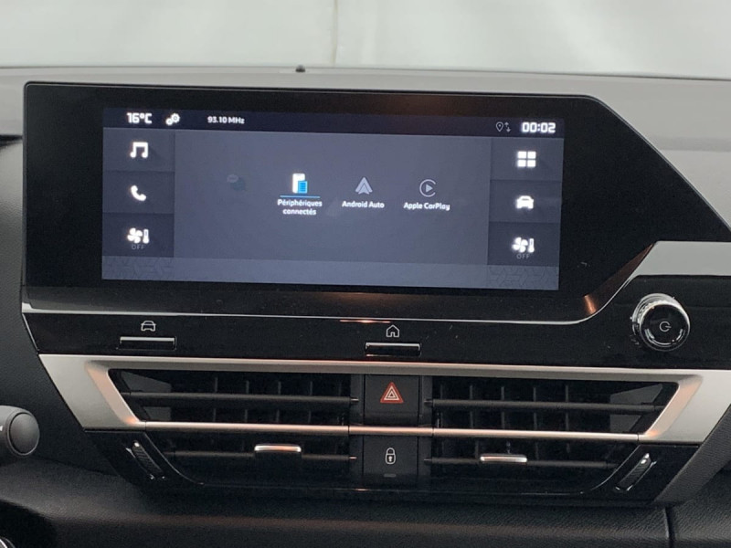 Détection de sous-gonflage / Elargisseurs d'aile et bas de caisse Noir Mat / Clignotants impulsionnels / Jupe AR Noir Brilliant / Enjoliveurs 18" AEROTECH / Aérateurs centraux en rang 2 / ABS + AFU + ESP + REF / Poche aumônière au dos des sièges AV / Suspension Citroën Advanced Comfort / Direction à assistance électrique variable / Siège conducteur avec réglage lombaire / Eclairage d?accueil et d'accompagnement / Pare-soleil avec miroir occultable côtés conducteur et passager / 2 Prises USB au rang 1 (1 type A + 1 type C pour fonction Mirror Screen) + 1 Prise USB au rang 2 (type A) / Combiné numérique couleur 5.5" TFT / Ecran central 10" tactile: - Système audio numérique (DAB) 6 haut-parleurs - Apple CarPlay et Android Auto - Reconnaissance vocale - Kit mains libres Bluetooth - Boîtier télématique : Appel d?urgence et Citroën Assistance / Condamnation centralisée avec Plip et condamnation automatique du coffre et des portes en roulant / Console centrale haute avec rangements fermés et 2 porte-gobelets et accoudoir coulissant / Fixations ISOFIX sur sièges latéraux AR (3 points d'encrage avec Top TetherTether) / Plafonniers AV et AR à lampes / Commande au volant du système audio et du régulateur - limiteur de vitesse / Feux diurnes à LED avec nouvelle signature lumineuse / Feux AR à LED avec nouvelle signature lumineuse / Pack Safety - Active Safety Brake (fonctionne de 30 à 80 km/h et détecte les piétons et les cyclistes) - Alerte active de Franchissement Involontaire de Ligne - Alerte Attention Conducteur - Alerte Risque Collision - Allumage automatique des feux de croisement - Coffee Break Alert - Reconnaissance des panneaux de vitesse et recommandation - Régulateur-limiteur de vitesse - Témoin de non-bouclage des ceintures de sécurité conducteur et passagers : Allumage automatique des feux de croisement Régulateur - limiteur de vitesse Coffee Break Alert Alerte attention conducteur Alerte Risque Collision Alerte active de Franchissement Involontaire de ligne Reconnaissance des panneaux de vitesse et recommandation Témoin de non-bouclage des ceintures de sécurité conducteur et passager Active Safety Brake (fonctionne de 30 à 80 km/h et détecte les piétons et les cyclistes) / Garnissage Tissu Hello Noir/Toile enduite Gris Ambiance Urban Grey + Sièges Advanced Comfort / Décor de panneaux de porte injecté Gris Horizon / Bande de dossiers en Tissu Curitiba Blanc/Noir / Accoudoir en Tissu Brasilia - Noir Mistral / Médaillons de porte AV en Tissu Brasilia - Noir Mistral / Boîte automatique 6 rapports / Essuie-vitre AV automatique (capteur de pluie) / Frein de stationnement électrique automatique / Poignées de portes extérieures couleur caisse / Kit de dépannage provisoire de pneumatiques / / Véhicules équivalents: 308 - Mégane - Golf