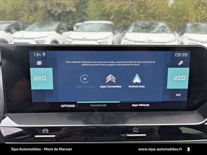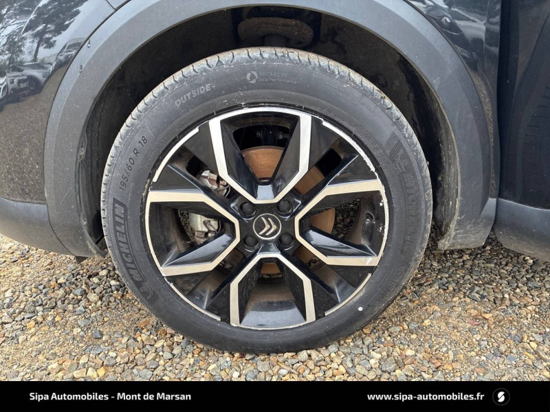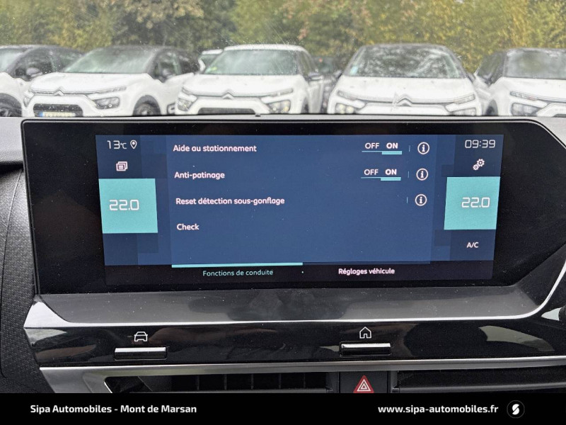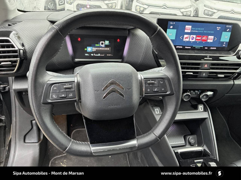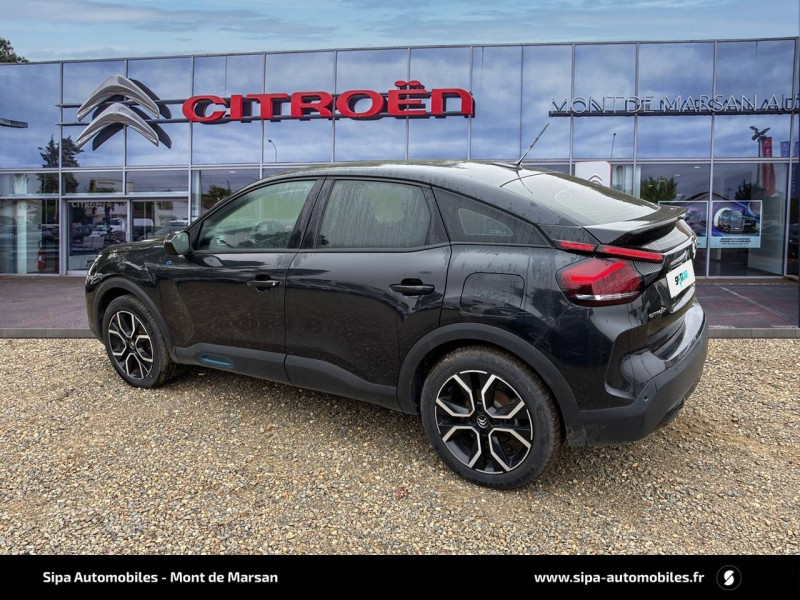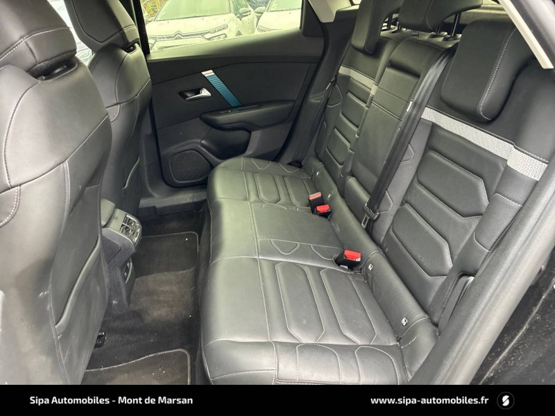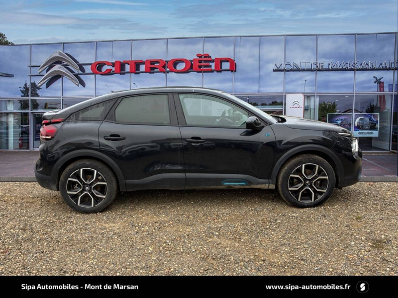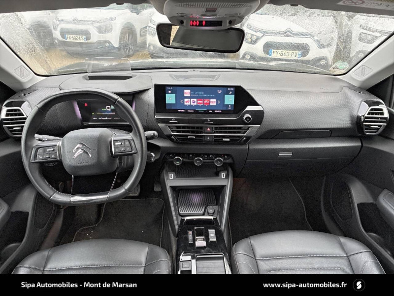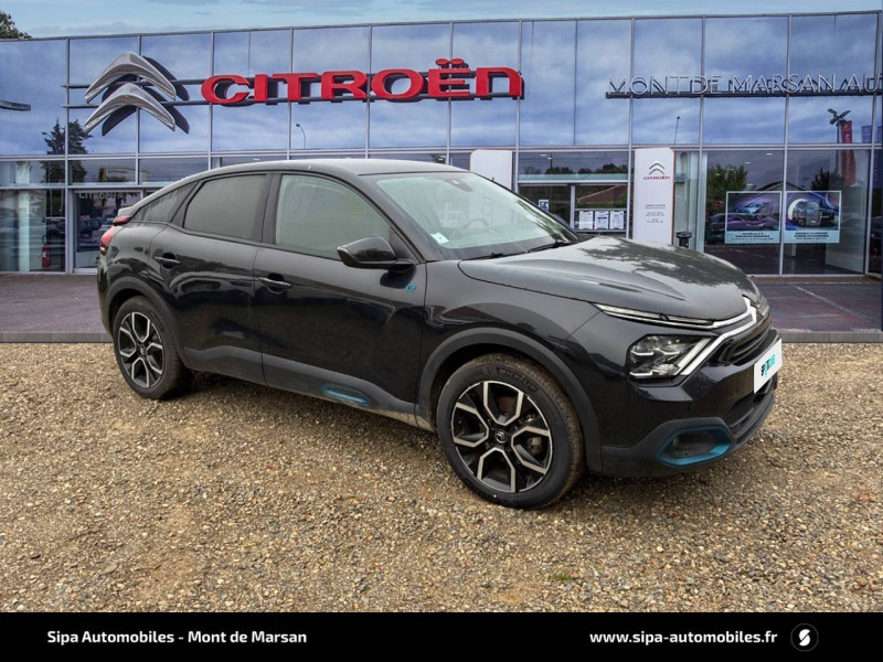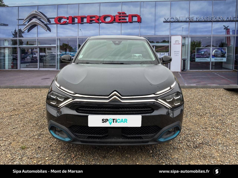 2 prises USB au rang 2 (1 type C + 1 type A) / ABS avec REF, AFU et ESP / Aérateurs centraux en rang 2 / Avertisseur sonore piéton / Câble de recharge Mode 2 renforcé 16A (pour prise type Green Up) / Caméra de recul avec Top Rear Vision / Chargeur embarqué 3,4 kW monophasé / Citroën Connect Box avec Pack SOS et assistance inclus / Citroën Connect Nav numérique sur tablette tactile 10'': comprend le système de navigation TomTom, la reconnaissance vocale et durant 3 ans les services Connect Nav (inclut les services « Zones de danger », « Info Trafic », « Stations-service », « Parkings », « Météo » et « Recherche locale ») / Citroën Connect Radio numérique sur tablette tactile 10" / Combiné numérique couleur avec rétro-éclairage / Connect Play : Mirror Screen / Console centrale haute avec rangements et accoudoir / Décor Bleu sur les panneaux intérieurs de porte / Détection de sous-gonflage / Ecran tactile 5" noir&blanc / Elargisseurs d'aile et bas de caisse Noir Mat / e-Services Charge My Car: comprend les services "Trip Planner" et "Charging Pass" pendant 1 an / Essuie-vitre AV automatique (capteur de pluie) / Frein de stationnement électrique automatique / Garnissage tissu Chevrons Gris/Textile effet cuir Noir Ambiance Urban Grey + Sièges Advanced Comfort / Jantes alliage 18" CROSSLIGHT Diamantées / Jupe AR Noir Brilliant / Kit de dépannage provisoire de pneumatiques / Pack Color Anodised Blue / Pack Safety 2 / Pack Safety - Active Safety Brake - Alerte active de Franchissement Involontaire de Ligne - Alerte Attention Conducteur - Alerte Risque Collision - Coffee Break Alert - Reconnaissance des panneaux de vitesse et recommandation - Régulateur-limiteur de vitesse - Témoin de non-bouclage des ceintures de sécurité conducteur et passagers / Plancher de coffre à 2 positions / Poches aumônières au dos des sièges AV / Poignées de portes extérieures couleur caisse / Préconditionnement thermique / Prise 12 V en rang 1 / Projecteurs antibrouillard LED avec éclairage statique d'intersection / Projecteurs LED avec signature lumineuse en V / Rétroviseur intérieur électrochrome / Siège conducteur avec réglage lombaire et accoudoir / Smart Pad Support Citroen / Surtapis AV et AR / Suspensions avec Butées Hydrauliques Progressives / Système audio numérique (DAB) MP3 6 HP / Tiroir de planche de bord