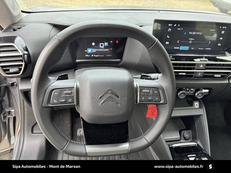 1 prise USB en rang 2 (type A) / 2 prises USB au rang 1 (1 type C + 1 type A) / ABS avec REF, AFU et ESP / Aérateurs centraux en rang 2 / Boîtier télématique: Appel d'urgence et Citroën Assistance les services Connect ONE pendant une période de 10 ans / Combiné numérique couleur / Console centrale haute avec rangements et accoudoir / Détection de sous-gonflage / Elargisseurs d'aile et bas de caisse Noir Mat / Essuie-vitre AV automatique (capteur de pluie) / Frein de stationnement électrique automatique / Garnissage Tissu Chevrons Gris/ Toile enduite Noir Ambiance Urban Grey + Sièges Advanced Comfort / Jantes alliage 18" AEROBLADE Gris Anthra / Jupe AR Noir Brilliant / Kit de dépannage provisoire de pneumatiques / Pack Color Noir Brillant / Pack Safety - Active Safety Brake - Alerte active de Franchissement Involontaire de Ligne - Alerte Attention Conducteur - Alerte Risque Collision - Coffee Break Alert - Reconnaissance des panneaux de vitesse et recommandation - Régulateur-limiteur de vitesse - Témoin de non-bouclage des ceintures de sécurité conducteur et passagers / Plancher de coffre à 2 positions / Poche aumônière au dos des sièges AV / Poignées de portes extérieures couleur caisse / Prise 12 V en rang 1 / Projecteurs antibrouillard LED avec éclairage statique d'intersection / Projecteurs LED avec signature lumineuse en V / Services Connect PLUS Comprend les services Connect Plus pour une période de 1 an / Sièges Advanced Comfort / Suspension Citroën Advanced Comfort / Système audio numérique 6 HP (DAB)