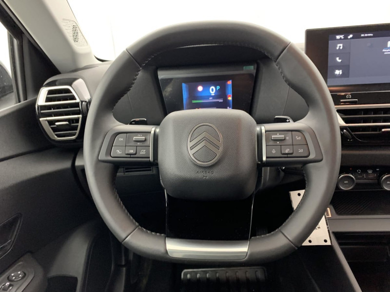 Détection de sous-gonflage / Elargisseurs d'aile et bas de caisse Noir Mat / Clignotants impulsionnels / Jupe AR Noir Brilliant / Enjoliveurs 18" AEROTECH / Aérateurs centraux en rang 2 / ABS + AFU + ESP + REF / Poche aumônière au dos des sièges AV / Suspension Citroën Advanced Comfort / Direction à assistance électrique variable / Siège conducteur avec réglage lombaire / Eclairage d?accueil et d'accompagnement / Pare-soleil avec miroir occultable côtés conducteur et passager / 2 Prises USB au rang 1 (1 type A + 1 type C pour fonction Mirror Screen) + 1 Prise USB au rang 2 (type A) / Combiné numérique couleur 5.5" TFT / Ecran central 10" tactile: - Système audio numérique (DAB) 6 haut-parleurs - Apple CarPlay et Android Auto - Reconnaissance vocale - Kit mains libres Bluetooth - Boîtier télématique : Appel d?urgence et Citroën Assistance / Condamnation centralisée avec Plip et condamnation automatique du coffre et des portes en roulant / Console centrale haute avec rangements fermés et 2 porte-gobelets et accoudoir coulissant / Fixations ISOFIX sur sièges latéraux AR (3 points d'encrage avec Top TetherTether) / Plafonniers AV et AR à lampes / Commande au volant du système audio et du régulateur - limiteur de vitesse / Feux diurnes à LED avec nouvelle signature lumineuse / Feux AR à LED avec nouvelle signature lumineuse / Pack Safety - Active Safety Brake (fonctionne de 30 à 80 km/h et détecte les piétons et les cyclistes) - Alerte active de Franchissement Involontaire de Ligne - Alerte Attention Conducteur - Alerte Risque Collision - Allumage automatique des feux de croisement - Coffee Break Alert - Reconnaissance des panneaux de vitesse et recommandation - Régulateur-limiteur de vitesse - Témoin de non-bouclage des ceintures de sécurité conducteur et passagers : Allumage automatique des feux de croisement Régulateur - limiteur de vitesse Coffee Break Alert Alerte attention conducteur Alerte Risque Collision Alerte active de Franchissement Involontaire de ligne Reconnaissance des panneaux de vitesse et recommandation Témoin de non-bouclage des ceintures de sécurité conducteur et passager Active Safety Brake (fonctionne de 30 à 80 km/h et détecte les piétons et les cyclistes) / Garnissage Tissu Hello Noir/Toile enduite Gris Ambiance Urban Grey + Sièges Advanced Comfort / Décor de panneaux de porte injecté Gris Horizon / Bande de dossiers en Tissu Curitiba Blanc/Noir / Accoudoir en Tissu Brasilia - Noir Mistral / Médaillons de porte AV en Tissu Brasilia - Noir Mistral / Boîte automatique 6 rapports / Essuie-vitre AV automatique (capteur de pluie) / Frein de stationnement électrique automatique / Poignées de portes extérieures couleur caisse / Kit de dépannage provisoire de pneumatiques / / Véhicules équivalents: 308 - Mégane - Golf