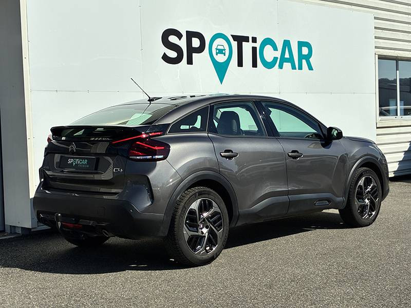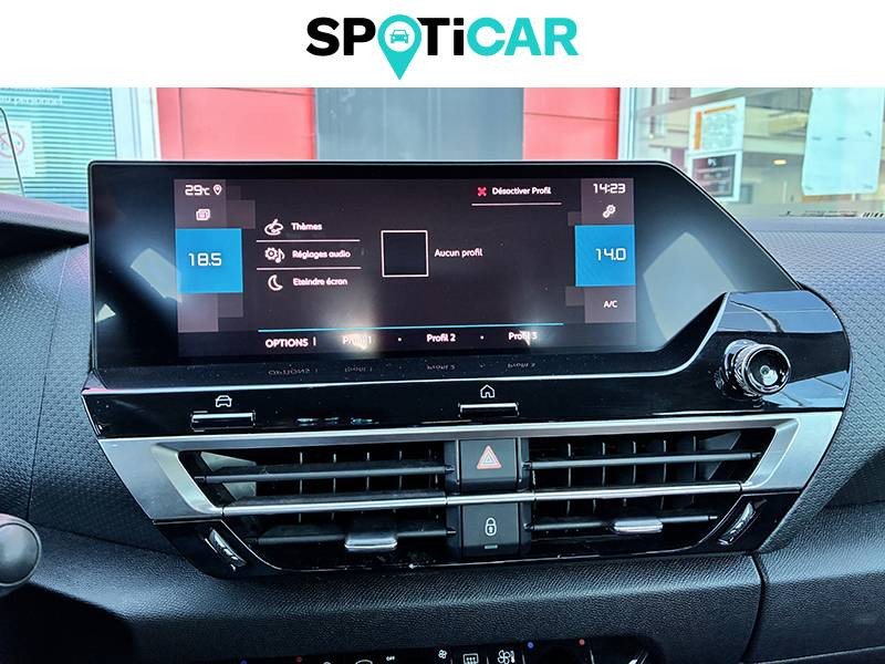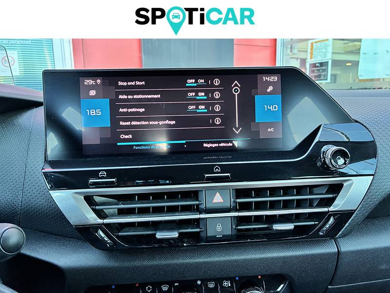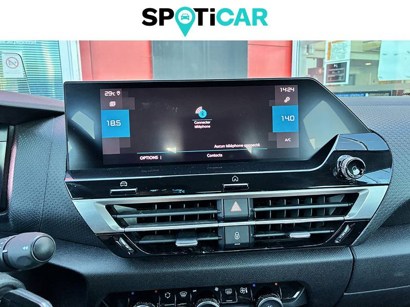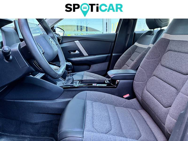 1 prise USB en rang 2 (type A) / 1 prise USB type C en rang 1 / 2 prises USB au rang 1 (1 type C + 1 type A) / ABS avec REF, AFU et ESP / Aérateurs centraux en rang 2 / Clignotants impulsionnels / Combiné numérique couleur avec rétro-éclairage / Console centrale haute avec rangements et accoudoir / Détection de sous-gonflage / Direction à assistance électrique variable / Eclairage d'accueil et d'accompagnement / Eclairage de cave à pieds AV / Elargisseurs d'aile et bas de caisse Noir Mat / Essuie-vitre AV automatique (capteur de pluie) / Frein de stationnement électrique automatique / Garnissage tissu Chevrons Gris/Textile effet cuir Noir Ambiance Urban Grey + Sièges Advanced Comfort / Jantes alliage 18" AEROBLADE Gris Anthra / Jupe AR Noir Brilliant / Kit de dépannage provisoire de pneumatiques / My Citroën Assist: Citroën Connect Box avec Pack SOS et assistance inclus / My Citroën Drive": Citroën Connect Nav numérique sur tablette tactile 10'' comprend le système de navigation TomTom, la reconnaissance vocale et durant 3 ans les services Connect Nav (inclut les services « Zones de danger », « Info Trafic », « Stations-service », « Parkings », « Météo » et « Recherche locale »). / My Citroën Play - Mirror Screen sans fils, compatible Android Auto et Apple CarPlay, Système audio numérique (DAB) MP3 6 HP,Tablette tactile 10" / Neutralisation mécanique de l'airbag passager / Pack Color Glossy Black / Pack Safety - Active Safety Brake - Alerte active de Franchissement Involontaire de Ligne - Alerte Attention Conducteur - Alerte Risque Collision - Coffee Break Alert - Reconnaissance des panneaux de vitesse et recommandation - Régulateur-limiteur de vitesse - Témoin de non-bouclage des ceintures de sécurité conducteur et passagers / Pare-soleil avec miroir occultable et éclairage à LED côtés conducteur et passager / Plafonniers AV et AR à LED / Plancher de coffre à 2 positions / Poche aumônière au dos des sièges AV / Poignées de portes extérieures couleur caisse / Prise 12 V en rang 1 / Prise USB-A en rang 1 / Prise USB-A en rang 2 / Projecteurs antibrouillard LED avec éclairage statique d'intersection / Projecteurs LED avec signature lumineuse en V / Sécurité enfants mécanique / Siège conducteur avec réglage lombaire et accoudoir / Sièges Advanced Comfort / Suspension Citroën Advanced Comfort / Système audio numérique (DAB) MP3 6 HP / Tiroir de planche de bord