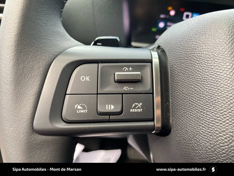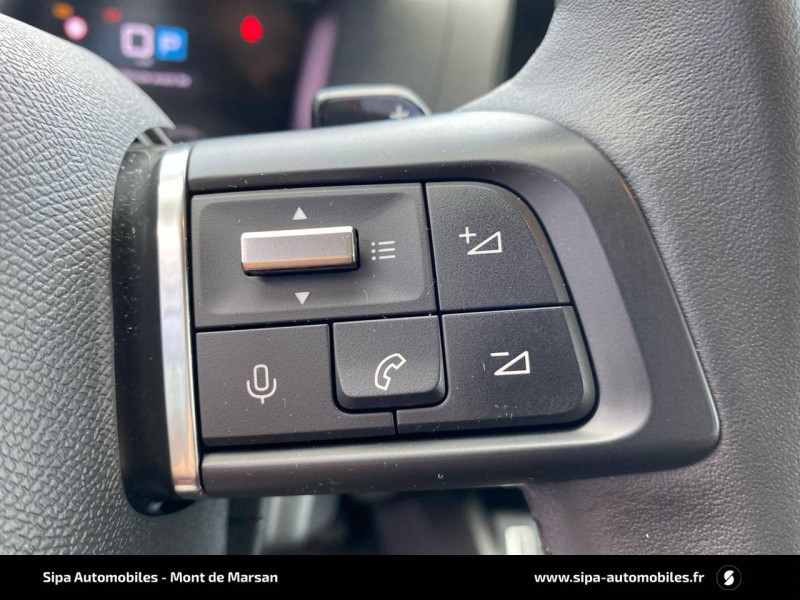 1 prise USB en rang 2 (type A) / 2 prises USB au rang 1 (1 type C + 1 type A) / ABS avec REF, AFU et ESP / Aérateurs centraux en rang 2 / Boîtier télématique : Appel d'urgence et Citroën Assistance les services Connect ONE pendant une période de 10 ans / Combiné numérique couleur / Console centrale haute avec rangements et accoudoir / Détection de sous-gonflage / Elargisseurs d'aile et bas de caisse Noir Mat / Essuie-vitre AV automatique (capteur de pluie) / Frein de stationnement électrique automatique / Garnissage Tissu Chevrons Gris/ Toile enduite Noir Ambiance Urban Grey + Sièges Advanced Comfort / Jantes alliage 18" AEROBLADE Gris Anthra / Jupe AR Noir Brilliant / Kit de dépannage provisoire de pneumatiques / Pack Color Noir Brillant / Pack Safety - Active Safety Brake - Alerte active de Franchissement Involontaire de Ligne - Alerte Attention Conducteur - Alerte Risque Collision - Coffee Break Alert - Reconnaissance des panneaux de vitesse et recommandation - Régulateur-limiteur de vitesse - Témoin de non-bouclage des ceintures de sécurité conducteur et passagers / Plancher de coffre à 2 positions / Poche aumônière au dos des sièges AV / Poignées de portes extérieures couleur caisse / Prise 12 V en rang 1 / Projecteurs antibrouillard LED avec éclairage statique d'intersection / Projecteurs LED avec signature lumineuse en V / Siège conducteur avec réglage lombaire / Sièges Advanced Comfort / Suspension Citroën Advanced Comfort / Système audio numérique 6 HP (DAB)