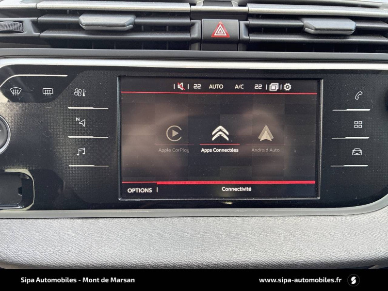 ABS avec REF, AFU et ESP / Accès et démarrage mains libres / Accoudoirs centraux AV réglables en inclinaison / Aérateurs bizone en rang 2 / Citroën Connect Box avec Pack SOS et assistance inclus: bouquet de services comprenant les appels d'urgence et d'assistance localisés / Citroën Connect Nav: comprend le système de navigation TomTom, la reconnaissance vocale et durant 3 ans les services Connect Nav (inclut les services Zones de danger, Info Trafic, Stations-service, Parkings, Météo et Recherche locale) / Coffee Break Alert / Contrôle de Traction Intelligent / Détection de sous-gonflage / Ecran panoramique 12" HD / Essuie-vitre AV automatique (capteur de pluie) / Frein de stationnement électrique automatique / Garnissage Tissu Finn Black /Tissu effet Cuir Black / Ambiance Hype Grey / Jantes alliage 17" SHAMAL Diamantées Noir / Kit de dépannage provisoire de pneumatiques / Mirror Screen Compatible avec Android Auto et Apple CarPlayTM / Pack Safety / Projecteurs antibrouillard avec éclairage statique d'intersection / Régulateur - limiteur de vitesse programmable / Sièges en rang 2 coulissants / Sièges en rang 3 escamotables / Signature lumineuse à LED / Surtapis AV et AR / Système audio numérique bi-tuner RDS MP3 (DAB) / Tablettes aviation au dos des sièges AV / Tablette tactile 7" de commande des fonctionnalités / Volant cuir pleine fleur / Volet de continuité des sièges de rang 2