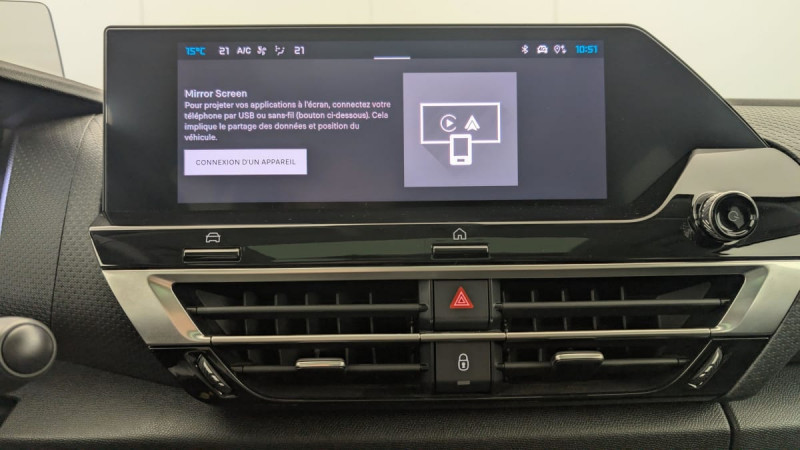 Détection de sous-gonflage / ABS avec REF, AFU et ESP / Volant cuir pleine fleur / Pack Safety : Régulateur-limiteur de vitesse Coffee Break Alert Alerte attention conducteur Alerte Risque Collision Témoin de non-bouclage des ceintures de sécurité conducteur et passagers Alerte active de Franchissement Involontaire de ligne Active Safety Brake Post Collision Safety Brake Reconnaissance des panneaux de vitesse et recommandation / Console centrale haute avec rangements et accoudoir / Pack Drive Assist : Système de surveillance d'angle mort Aide au stationnement AV Aide au stationnement latéral / Pack Safety 2 : Active Safety Brake 2.0 Reconnaissance des panneaux de vitesse et recommandation / Projecteurs antibrouillard LED avec éclairage statique d'intersection / Combiné numérique couleur avec rétro-éclairage / Projecteurs LED avec signature lumineuse en V / Garnissage textile effet cuir Noir/Tissu Gris Ambiance Metropolitan Grey + Sièges Advanced Comfort / Prise 12 V en rang 1 / Suspension Citroën Advanced Comfort / My Citroën Assist : Citroën Connect Box avec Pack SOS / Sièges Advanced Comfort / My Citroën Play - Mirror Screen sans fils, compatible Android Auto et Apple CarPlay / Pack Style : Jonc chromé sur les lécheurs de vitres latérales Vitres et lunette AR surteintées / Commutation automatique des feux de route / Jantes alliage 18" AEROBLADE Diamantées / Pack Color Glossy Silver : Inserts autour des projecteurs antibrouillard et sur les protections de bas de caisse / Rétroviseur intérieur électrochrome / My Citroën Drive Plus: navigation sur tablette tactile 10'' comprend le système de navigation 3D TomTom & la reconnaissance vocale avec langage naturel / Siège conducteur avec réglage lombaire et accoudoir / Essuie-vitre AV automatique (capteur de pluie) / Frein de stationnement électrique automatique / Kit de dépannage provisoire de pneumatiques / / Véhicules équivalents: 308 - Mégane - Golf
