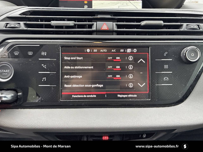 ABS avec REF, AFU et ESP / Accoudoirs centraux AV réglables en inclinaison / Aérateurs bizone en rang 2 / Citroën Connect Box avec Pack SOS et assistance inclus: bouquet de services comprenant les appels d'urgence et d'assistance localisés / Citroën Connect Nav: comprend le système de navigation TomTom, la reconnaissance vocale et durant 3 ans les services Connect Nav (inclut les services Zones de danger, Info Trafic, Stations-service, Parkings, Météo et Recherche locale) / Coffee Break Alert / Contrôle de Traction Intelligent / Détection de sous-gonflage / Ecran panoramique 12" HD / Essuie-vitre AV automatique (capteur de pluie) / Frein de stationnement électrique automatique / Garnissage Tissu Milazzo Grey / Kit de dépannage provisoire de pneumatiques / Mirror Screen Compatible avec Android Auto et Apple CarPlayTM / Projecteurs antibrouillard avec éclairage statique d'intersection / Régulateur - limiteur de vitesse programmable / Sièges en rang 2 coulissants / Sièges en rang 3 escamotables / Signature lumineuse à LED / Système audio numérique bi-tuner RDS MP3 (DAB) / Tablette tactile 7" de commande des fonctionnalités