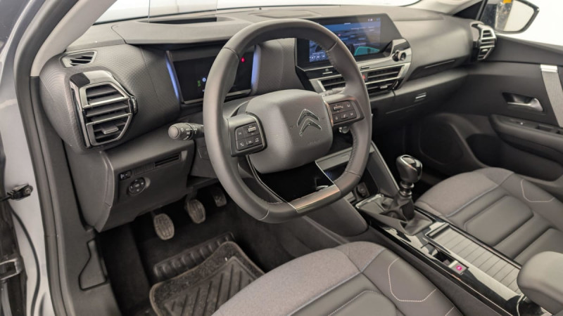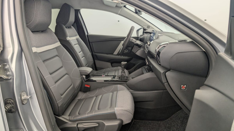 Détection de sous-gonflage / ABS avec REF, AFU et ESP / Pack Safety : Régulateur-limiteur de vitesse Coffee Break Alert Alerte attention conducteur Alerte Risque Collision Témoin de non-bouclage des ceintures de sécurité conducteur et passagers Alerte active de Franchissement Involontaire de ligne Active Safety Brake Reconnaissance des panneaux de vitesse et recommandation / Elargisseurs d'aile et bas de caisse Noir Mat / Console centrale haute avec rangements et accoudoir / Jupe AR Noir Brilliant / Plancher de coffre à 2 positions / Projecteurs antibrouillard LED avec éclairage statique d'intersection / Prise 12 V en rang 1 / Suspension Citroën Advanced Comfort / Sièges Advanced Comfort / Rétroviseur intérieur électrochrome / Eclairage d'accompagnement sous les rétroviseurs extérieurs / Jantes alliage 18" AEROBLADE Diamantées / Pack Access & Nav : Accès et démarrage mains libres Proximity 2 Télécommandes 3 boutons (verrouillage, coffre et déverrouillage). Tiroir de planche de bord Combiné numérique couleur avec rétro-éclairage Top Rear Vision de la caméra de recul Navigation 3D sur écran central 10" tactile Comprend le système de navigation TomTom, la reconnaissance vocale avec langage naturel, l'interface personnalisable, et les services Connect PLUS additionnels / Pack Color Silver / Boîtier télématique: Appel d'urgence / Système audio numérique 6 HP (DAB) / Garnissage Toile enduite Noir/Tissu Gris Ambiance Metropolitan Grey + Sièges Advanced Comfort / Pack Drive Assist : Système de surveillance d'angle mort Aide au stationnement AV Commutation automatique des feux de route Aide au stationnement latéral / Essuie-vitre AV automatique (capteur de pluie) / Frein de stationnement électrique automatique / Poignées de portes extérieures couleur caisse / Kit de dépannage provisoire de pneumatiques / / Véhicules équivalents: 308 - Mégane - Golf