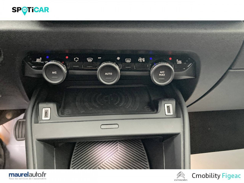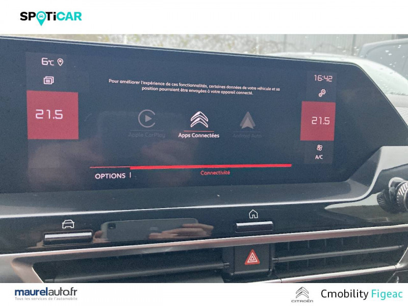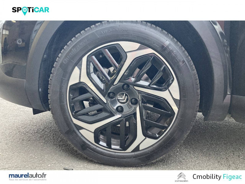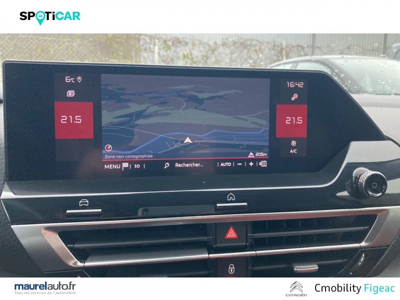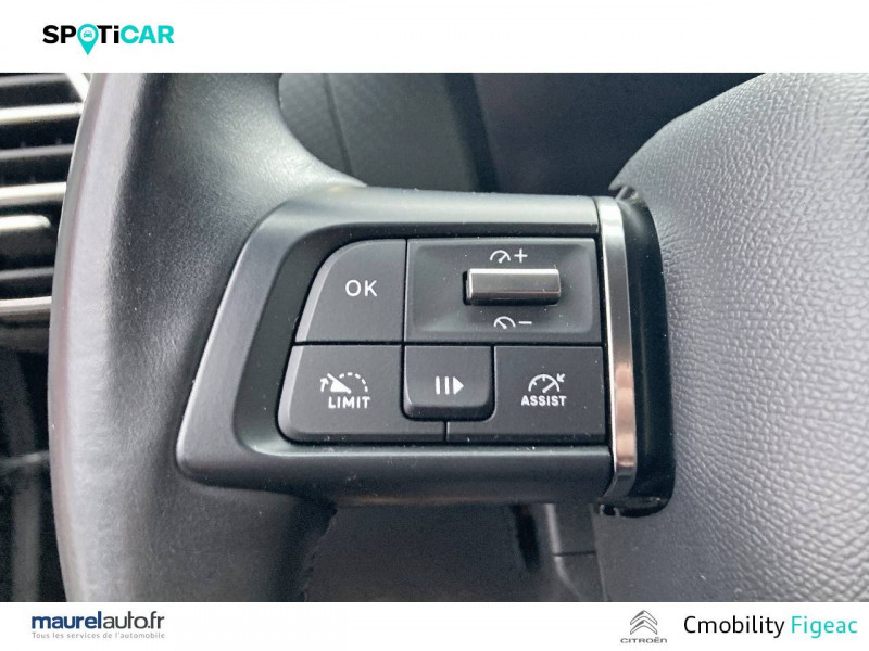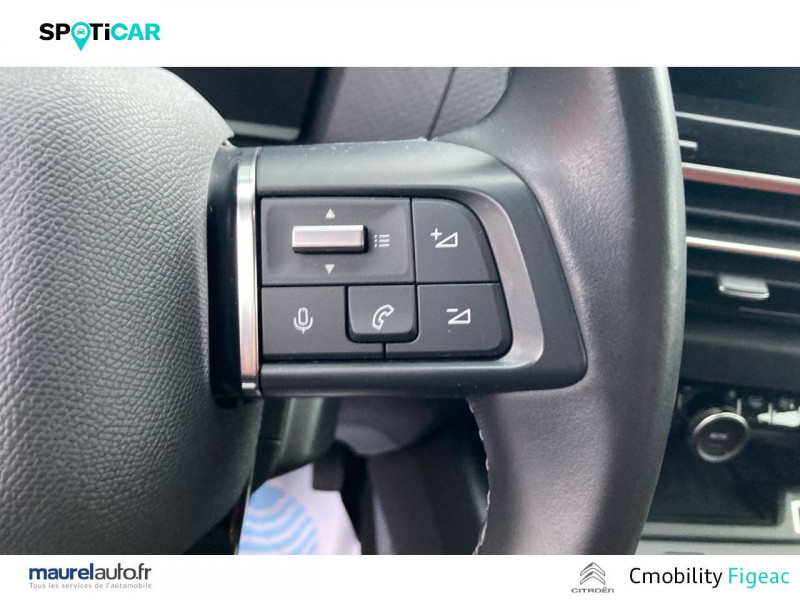 1 prise USB type C en rang 1 / 2 prises USB au rang 1 / ABS + REF + AFU / Accès et démarrage mains libres Proximity / Aérateurs en rang 2 / Caméra de recul avec Top Rear Vision / Citroën Connect Nav numérique sur tablette tactile 10" / Citroën Connect Radio numérique sur tablette tactile 10" / Combiné numérique couleur avec rétro-éclairage / Connect Assist : Citroën Connect Box avec Pack SOS et assistance inclus / Connect Play : Mirror Screen / Console centrale haute avec rangements et accoudoir / Détection de sous-gonflage / Ecran tactile 5" noir&blanc / Elargisseurs d'aile et bas de caisse Noir Mat / Essuie-vitre AV automatique (capteur de pluie) / Frein de stationnement électrique automatique / Garnissage textile effet cuir Noir/Tissu Gris Ambiance Metropolitan Grey + Sièges Advanced Comfort / Jantes alliage 18" AEROBLADE Dark / Jupe AR Noir Brilliant / Kit de dépannage provisoire de pneumatiques / Pack Color Gris Texturé / Pack Drive Assist Aide au stationnement AV et latéral, Commutation automatique des feux de route, Régulateur de vitesse adaptatif avec fonction Stop & Go,Système de surveillance d'angle mort / Pack Safety 2 / Pack Safety - Active Safety Brake - Alerte active de Franchissement Involontaire de Ligne - Alerte Attention Conducteur - Alerte Risque Collision - Coffee Break Alert - Reconnaissance des panneaux de vitesse et recommandation - Régulateur-limiteur de vitesse - Témoin de non-bouclage des ceintures de sécurité conducteur et passagers / Pack Style Jonc chromé sur les lécheurs de vitres latérales,Vitres et lunette AR surteintées / Plancher de coffre à 2 positions / Poches aumônières au dos des sièges AV / Poignées de portes extérieures couleur caisse / Projecteurs antibrouillard LED avec éclairage statique d'intersection / Projecteurs LED avec signature lumineuse en V / Reconnaissance vocale / Rétroviseur intérieur électrochrome / Siège conducteur avec réglage lombaire et accoudoir / Smart Pad Support Citroen / Suspensions avec Butées Hydrauliques Progressives / Système audio numérique (DAB) MP3 6 HP / Tiroir de planche de bord / Volant cuir pleine fleur