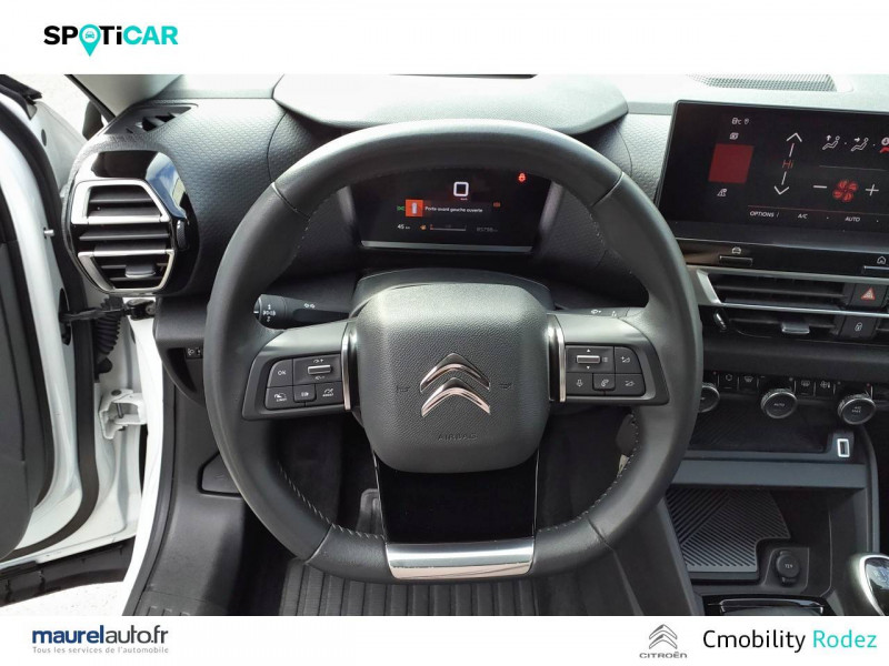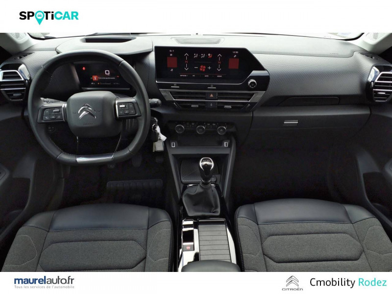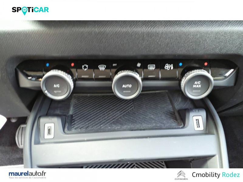 Connect Assist : Citroën Connect Box avec Pack SOS et assistance inclus / Connect Nav : Citroën Connect Nav numérique sur tablette tactile 10'' comprend le système de navigation TomTom, la reconnaissance vocale et durant 3 ans les services Connect Nav (inclut les services « Zones de danger », « Info Trafic », « Stations-service », « Parkings », « Météo » et « Recherche locale »). / Essuie-vitre AV automatique (capteur de pluie) / Frein de stationnement électrique automatique / Garnissage tissu Chevrons Gris/Textile effet cuir Noir Ambiance Urban Grey + Sièges Advanced Comfort / Jantes alliage 18" AEROBLADE Gris Anthra / Pack Color Glossy Black / Pack Safety - Active Safety Brake - Alerte active de Franchissement Involontaire de Ligne - Alerte Attention Conducteur - Alerte Risque Collision - Coffee Break Alert - Reconnaissance des panneaux de vitesse et recommandation - Régulateur-limiteur de vitesse - Témoin de non-bouclage des ceintures de sécurité conducteur et passagers / Projecteurs antibrouillard LED avec éclairage statique d'intersection / Projecteurs LED avec signature lumineuse en V / 1 prise USB en rang 2 (type A) / 2 prises USB au rang 1 (1 type C + 1 type A) / ABS avec REF, AFU et ESP / Aérateurs centraux en rang 2 / Citroën Connect Radio numérique sur tablette tactile 10" / Combiné numérique couleur avec rétro-éclairage / Connect Play : Mirror Screen / Console centrale haute avec rangements et accoudoir / Détection de sous-gonflage / Elargisseurs d'aile et bas de caisse Noir Mat / Jupe AR Noir Brilliant / Kit de dépannage provisoire de pneumatiques / Plancher de coffre à 2 positions / Poche aumônière au dos des sièges AV / Poignées de portes extérieures couleur caisse / Prise 12 V en rang 1 / Siège conducteur avec réglage lombaire et accoudoir / Suspension Citroën Advanced Comfort / Système audio numérique (DAB) MP3 6 HP / Tiroir de planche de bord