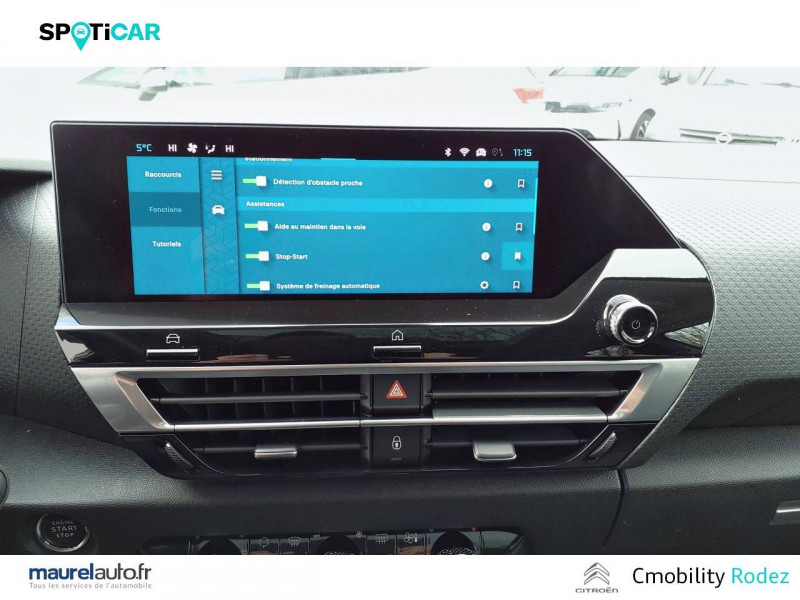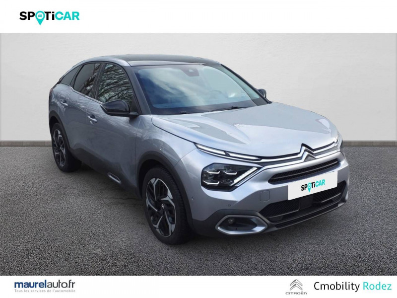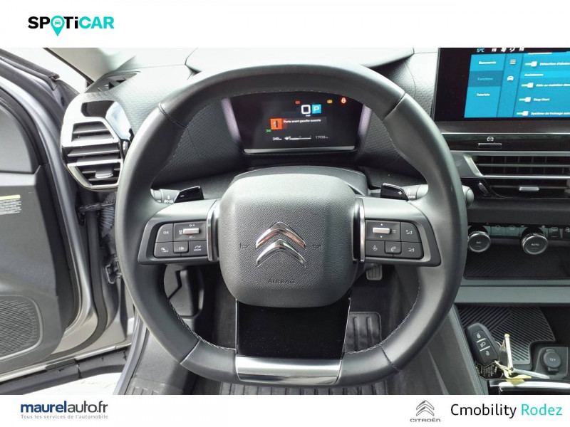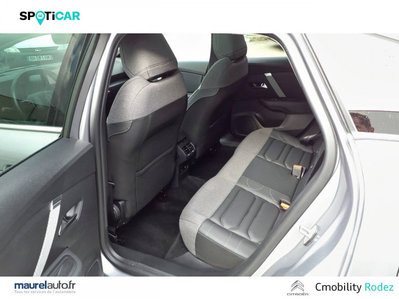 Commutation automatique des feux de route / Essuie-vitre AV automatique (capteur de pluie) / Frein de stationnement électrique automatique / Garnissage textile effet cuir Noir/Tissu Gris Ambiance Metropolitan Grey + Sièges Advanced Comfort / Jantes alliage 18" AEROBLADE Diamantées / My Citroën Assist : Citroën Connect Box avec Pack SOS et assistance inclus / My Citroën Drive Plus: navigation sur tablette tactile 10'' comprend le système de navigation 3D TomTom, la reconnaissance vocale avec langage naturel, l'interface personnalisable, et durant 3 ans les services My Citroën Drive Plus (inclut les services «Zones de danger», «Info Trafic», «Stations-service», «Parkings, «Météo» et «Recherche locale») / Pack Color Glossy Silver / Pack Drive Assist Aide au stationnement AV et latéral, Commutation automatique des feux de route, Régulateur de vitesse adaptatif avec fonction Stop & Go,Système de surveillance d'angle mort / Pack Safety - Active Safety Brake - Alerte active de Franchissement Involontaire de Ligne - Alerte Attention Conducteur - Alerte Risque Collision - Coffee Break Alert - Reconnaissance des panneaux de vitesse et recommandation - Régulateur-limiteur de vitesse - Témoin de non-bouclage des ceintures de sécurité conducteur et passagers / Pack Safety 2 / Projecteurs antibrouillard LED avec éclairage statique d'intersection / Projecteurs LED avec signature lumineuse en V / Volant cuir pleine fleur / 1 prise USB en rang 2 (type A) / 2 prises USB au rang 1 (1 type C + 1 type A) / ABS avec REF, AFU et ESP / Accès et démarrage mains libres Proximity / Aérateurs centraux en rang 2 / Combiné numérique couleur avec rétro-éclairage / Console centrale haute avec rangements et accoudoir / Détection de sous-gonflage / Eclairage d'accompagnement sous les rétroviseurs extérieurs / Elargisseurs d'aile et bas de caisse Noir Mat / Jupe AR Noir Brilliant / Kit de dépannage provisoire de pneumatiques / My Citroën Play - Mirror Screen sans fils, compatible Android Auto et Apple CarPlay, Système audio numérique (DAB) MP3 6 HP,Tablette tactile 10" / Plancher de coffre à 2 positions / Poche aumônière au dos des sièges AV / Poignées de portes extérieures couleur caisse / Prise 12 V en rang 1 / Rétroviseur intérieur électrochrome / Siège conducteur avec réglage lombaire et accoudoir / Sièges Advanced Comfort / Smart Pad Support Citroen / Suspension Citroën Advanced Comfort / Système audio numérique (DAB) MP3 6 HP / Tiroir de planche de bord / Top Rear Vision (caméra de recul avec visualisation 180° sur tablette)