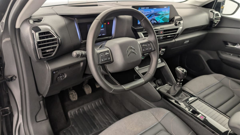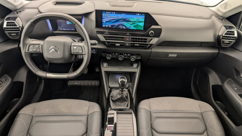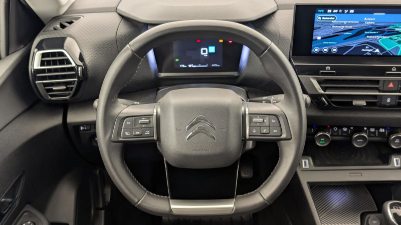 Détection de sous-gonflage / ABS avec REF, AFU et ESP / Pack Safety : Régulateur-limiteur de vitesse Coffee Break Alert Alerte attention conducteur Alerte Risque Collision Témoin de non-bouclage des ceintures de sécurité conducteur et passagers Alerte active de Franchissement Involontaire de ligne Active Safety Brake Reconnaissance des panneaux de vitesse et recommandation / Elargisseurs d'aile et bas de caisse Noir Mat / Console centrale haute avec rangements et accoudoir / Jupe AR Noir Brilliant / Plancher de coffre à 2 positions / Projecteurs antibrouillard LED avec éclairage statique d'intersection / Prise 12 V en rang 1 / Suspension Citroën Advanced Comfort / Sièges Advanced Comfort / Rétroviseur intérieur électrochrome / Eclairage d'accompagnement sous les rétroviseurs extérieurs / Jantes alliage 18" AEROBLADE Diamantées / Pack Access & Nav : Accès et démarrage mains libres Proximity 2 Télécommandes 3 boutons (verrouillage, coffre et déverrouillage). Tiroir de planche de bord Combiné numérique couleur avec rétro-éclairage Top Rear Vision de la caméra de recul Navigation 3D sur écran central 10" tactile Comprend le système de navigation TomTom, la reconnaissance vocale avec langage naturel, l'interface personnalisable, et les services Connect PLUS additionnels / Pack Color Silver / Boîtier télématique: Appel d'urgence / Système audio numérique 6 HP (DAB) / Garnissage Toile enduite Noir/Tissu Gris Ambiance Metropolitan Grey + Sièges Advanced Comfort / Pack Drive Assist : Système de surveillance d'angle mort Aide au stationnement AV Commutation automatique des feux de route Aide au stationnement latéral / Essuie-vitre AV automatique (capteur de pluie) / Frein de stationnement électrique automatique / Poignées de portes extérieures couleur caisse / Kit de dépannage provisoire de pneumatiques / / Véhicules équivalents: 308 - Mégane - Golf