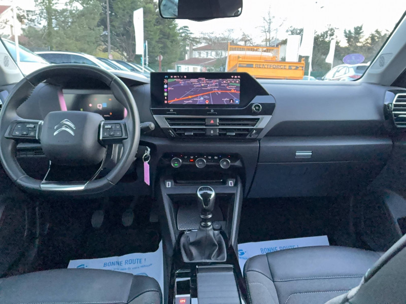 1 prise USB en rang 2 (type A) / 2 prises USB au rang 1 (1 type C + 1 type A) / ABS avec REF, AFU et ESP / Aérateurs centraux en rang 2 / Combiné numérique couleur avec rétro-éclairage / Console centrale haute avec rangements et accoudoir / Détection de sous-gonflage / Elargisseurs d'aile et bas de caisse Noir Mat / Essuie-vitre AV automatique (capteur de pluie) / Frein de stationnement électrique automatique / Garnissage tissu Chevrons Gris/Textile effet cuir Noir Ambiance Urban Grey + Sièges Advanced Comfort / Jantes alliage 18" AEROBLADE Gris Anthra / Jupe AR Noir Brilliant / Kit de dépannage provisoire de pneumatiques / My Citroën Assist : Citroën Connect Box avec Pack SOS et assistance inclus / Pack Color Glossy Black / Pack Safety - Active Safety Brake - Alerte active de Franchissement Involontaire de Ligne - Alerte Attention Conducteur - Alerte Risque Collision - Coffee Break Alert - Reconnaissance des panneaux de vitesse et recommandation - Régulateur-limiteur de vitesse - Témoin de non-bouclage des ceintures de sécurité conducteur et passagers / Plancher de coffre à 2 positions / Poche aumônière au dos des sièges AV / Poignées de portes extérieures couleur caisse / Prise 12 V en rang 1 / Projecteurs antibrouillard LED avec éclairage statique d'intersection / Projecteurs LED avec signature lumineuse en V / Siège passager avec réglage lombaire / Sièges Advanced Comfort / Suspension Citroën Advanced Comfort / Système audio numérique (DAB) MP3 6 HP / Tiroir de planche de bord