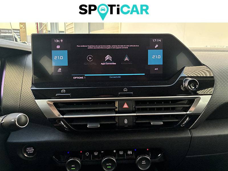 1 prise USB en rang 2 (type A) / 2 prises USB au rang 1 (1 type C + 1 type A) / ABS avec REF, AFU et ESP / Accès et démarrage mains libres Proximity / Aérateurs centraux en rang 2 / Citroën Connect Radio numérique sur tablette tactile 10" / Combiné numérique couleur avec rétro-éclairage / Console centrale haute avec rangements et accoudoir / Détection de sous-gonflage / Elargisseurs d'aile et bas de caisse Noir Mat / Essuie-vitre AV automatique (capteur de pluie) / Frein de stationnement électrique automatique / Garnissage tissu Chevrons Gris/Textile effet cuir Noir Ambiance Urban Grey + Sièges Advanced Comfort / Jantes alliage 18" AEROBLADE Gris Anthra / Jupe AR Noir Brilliant / Kit de dépannage provisoire de pneumatiques / My Citroën Assist: Citroën Connect Box avec Pack SOS et assistance inclus / My Citroën Drive": Citroën Connect Nav numérique sur tablette tactile 10'' comprend le système de navigation TomTom, la reconnaissance vocale et durant 3 ans les services Connect Nav (inclut les services « Zones de danger », « Info Trafic », « Stations-service », « Parkings », « Météo » et « Recherche locale »). / My Citroën Play - Mirror Screen sans fils, compatible Android Auto et Apple CarPlay, Système audio numérique (DAB) MP3 6 HP,Tablette tactile 10" / Pack Color Glossy Black / Pack Drive Assist Aide au stationnement AV et latéral, Commutation automatique des feux de route, Régulateur de vitesse adaptatif avec fonction Stop & Go,Système de surveillance d'angle mort / Pack Safety 2 / Pack Safety - Active Safety Brake - Alerte active de Franchissement Involontaire de Ligne - Alerte Attention Conducteur - Alerte Risque Collision - Coffee Break Alert - Reconnaissance des panneaux de vitesse et recommandation - Régulateur-limiteur de vitesse - Témoin de non-bouclage des ceintures de sécurité conducteur et passagers / Plancher de coffre à 2 positions / Poche aumônière au dos des sièges AV / Poignées de portes extérieures couleur caisse / Prise 12 V en rang 1 / Projecteurs antibrouillard LED avec éclairage statique d'intersection / Projecteurs LED avec signature lumineuse en V / Rétroviseur intérieur électrochrome / Siège conducteur avec réglage lombaire et accoudoir / Suspension Citroën Advanced Comfort / Système audio numérique (DAB) MP3 6 HP / Tiroir de planche de bord / Volant cuir pleine fleur