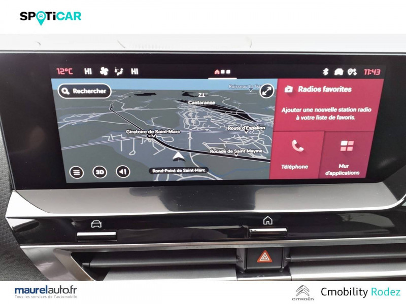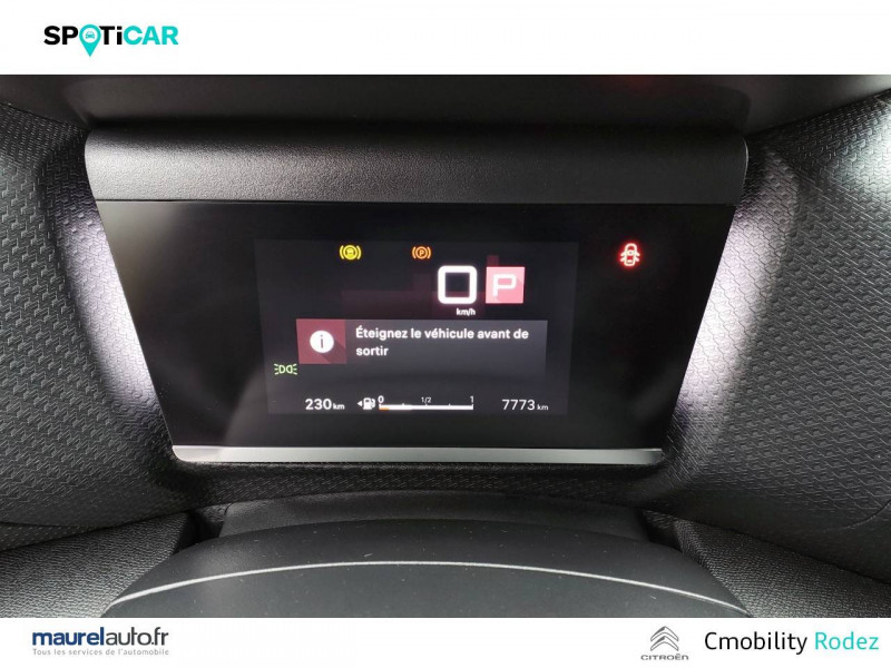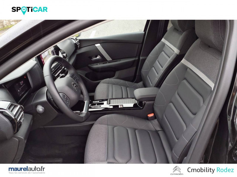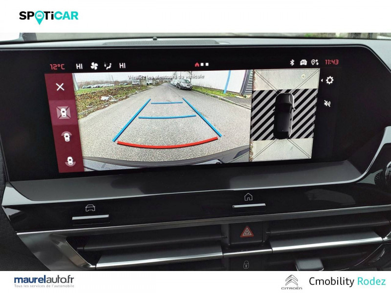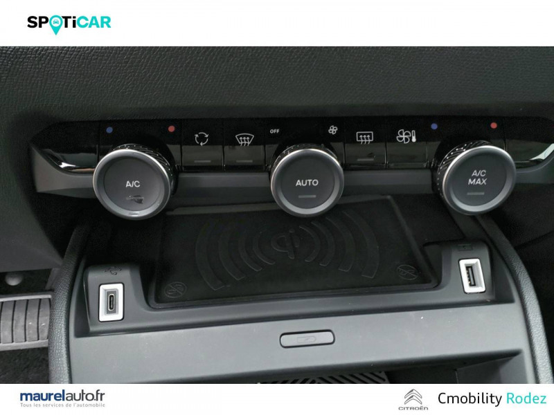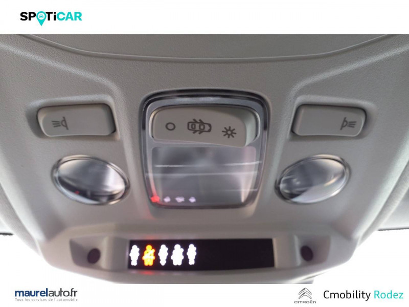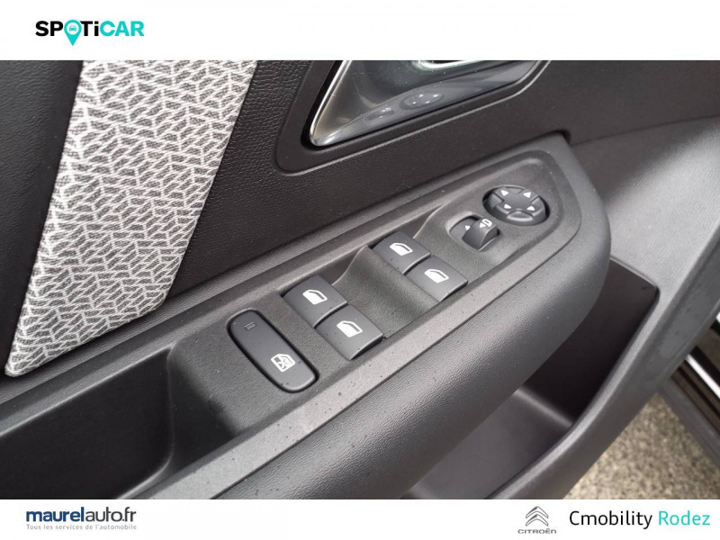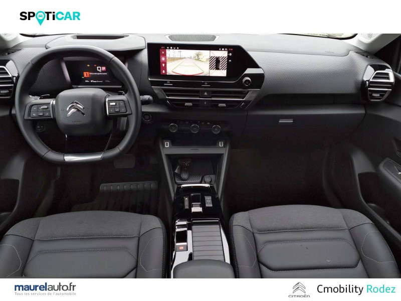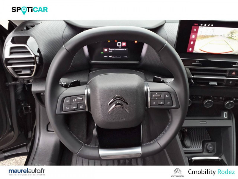 1 prise USB en rang 2 (type A) / 2 prises USB au rang 1 (1 type C + 1 type A) / ABS avec REF, AFU et ESP / Aérateurs centraux en rang 2 / Boîtier télématique: Appel d'urgence et Citroën Assistance les services Connect ONE pendant une période de 10 ans / Console centrale haute avec rangements et accoudoir / Détection de sous-gonflage / Eclairage d'accompagnement sous les rétroviseurs extérieurs / Elargisseurs d'aile et bas de caisse Noir Mat / Essuie-vitre AV automatique (capteur de pluie) / Frein de stationnement électrique automatique / Garnissage Toile enduite Noir/Tissu Gris Ambiance Metropolitan Grey + Sièges Advanced Comfort / Jantes alliage 18" AEROBLADE Diamantées / Jupe AR Noir Brilliant / Kit de dépannage provisoire de pneumatiques / Pack Access & Nav Accès et démarrage mains libres Proximity, Combiné numérique couleur avec rétro-éclairage. Fonction Top Rear Vision de la caméra de recul, Navigation 3D sur écran cemtral 10,'' Tiroir de planche de bord / Pack Color Silver / Pack Drive Assist Aide au stationnement AV et latéral, Commutation automatique des feux de route, Régulateur de vitesse adaptatif avec fonction Stop & Go,Système de surveillance d'angle mort / Pack Safety 2 Active Safety Brake 2.0, Reconnaissance étendue des panneaux et recommandation de vitesse / Pack Safety - Active Safety Brake - Alerte active de Franchissement Involontaire de Ligne - Alerte Attention Conducteur - Alerte Risque Collision - Coffee Break Alert - Reconnaissance des panneaux de vitesse et recommandation - Régulateur-limiteur de vitesse - Témoin de non-bouclage des ceintures de sécurité conducteur et passagers / Pack Style Jonc chromé sur les lécheurs de vitres latérales,Vitres et lunette AR surteintées / Plancher de coffre à 2 positions / Poche aumônière au dos des sièges AV / Poignées de portes extérieures couleur caisse / Prise 12 V en rang 1 / Projecteurs antibrouillard LED avec éclairage statique d'intersection / Projecteurs LED avec signature lumineuse en V / Rétroviseur intérieur électrochrome / Services Connect PLUS Comprend les services Connect Plus pour une période de 1 an / Siège conducteur avec réglage lombaire / Sièges Advanced Comfort / Smart Pad Support Citroen / Suspension Citroën Advanced Comfort / Système audio numérique 6 HP (DAB) / Volant cuir pleine fleur