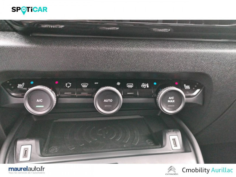 2 prises USB au rang 2 (1 type C + 1 type A) / ABS avec REF, AFU et ESP / Accès et démarrage mains libres Proximity / Aérateurs centraux en rang 2 / Caméra de recul avec Top Rear Vision / Citroën Connect Box avec Pack SOS et assistance inclus / Citroën Connect Nav numérique sur tablette tactile 10'': comprend le système de navigation TomTom, la reconnaissance vocale et durant 3 ans les services Connect Nav (inclut les services « Zones de danger », « Info Trafic », « Stations-service », « Parkings », « Météo » et « Recherche locale ») / Citroën Connect Radio numérique sur tablette tactile 10" / Combiné numérique couleur avec rétro-éclairage / Connect Play : Mirror Screen / Console centrale haute avec rangements et accoudoir / Détection de sous-gonflage / Ecran tactile 5" noir&blanc / Elargisseurs d'aile et bas de caisse Noir Mat / Essuie-vitre AV automatique (capteur de pluie) / Frein de stationnement électrique automatique / Garnissage cuir grainé Siena Noir / Textile effet cuir Noir Ambiance Hype Black + Sièges Advanced Comfort / HiFi System 8 HP + voie centrale + caisson de basse / Highway Driver Assist / Jantes alliage 18" AEROBLADE Dark / Jupe AR Noir Brilliant / Kit de dépannage provisoire de pneumatiques / Pack Color Gris Texturé / Pack Drive Assist+ / Pack Drive Assist Aide au stationnement AV et latéral, Commutation automatique des feux de route, Régulateur de vitesse adaptatif avec fonction Stop & Go,Système de surveillance d'angle mort / Pack Safety 2 / Pack Safety - Active Safety Brake - Alerte active de Franchissement Involontaire de Ligne - Alerte Attention Conducteur - Alerte Risque Collision - Coffee Break Alert - Reconnaissance des panneaux de vitesse et recommandation - Régulateur-limiteur de vitesse - Témoin de non-bouclage des ceintures de sécurité conducteur et passagers / Pack Style Jonc chromé sur les lécheurs de vitres latérales,Vitres et lunette AR surteintées / Plancher de coffre à 2 positions / Poches aumônières au dos des sièges AV / Poignées de portes extérieures couleur caisse / Prise 12 V en rang 1 / Projecteurs antibrouillard LED avec éclairage statique d'intersection / Projecteurs LED avec signature lumineuse en V / Recharge sans fil pour smartphone / Rétroviseur intérieur électrochrome / Siège conducteur avec réglage lombaire et accoudoir / Smart Pad Support Citroen / Surtapis AV et AR / Suspensions avec Butées Hydrauliques Progressives / Système audio numérique (DAB) MP3 6 HP / Tiroir de planche de bord / Volant cuir pleine fleur