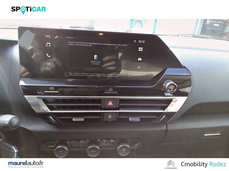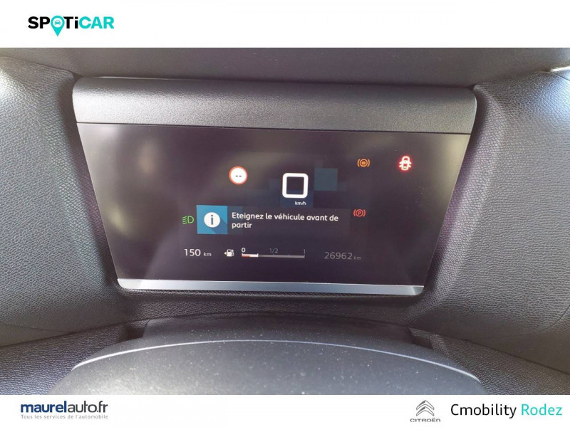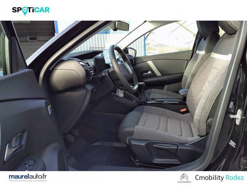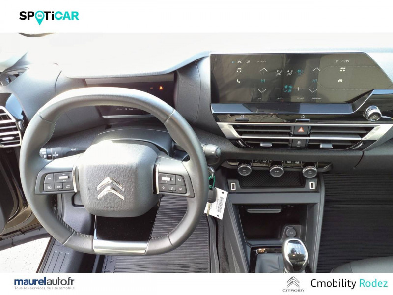 1 prise USB en rang 2 (type A) / 2 prises USB au rang 1 (1 type C + 1 type A) / ABS avec REF, AFU et ESP / Aérateurs centraux en rang 2 / Combiné numérique couleur avec rétro-éclairage / Console centrale haute avec rangements et accoudoir / Détection de sous-gonflage / Elargisseurs d'aile et bas de caisse Noir Mat / Essuie-vitre AV automatique (capteur de pluie) / Frein de stationnement électrique automatique / Garnissage tissu Chevrons Gris/Textile effet cuir Noir Ambiance Urban Grey + Sièges Advanced Comfort / Jantes alliage 18" AEROBLADE Gris Anthra / Jupe AR Noir Brilliant / Kit de dépannage provisoire de pneumatiques / My Citroën Play - Mirror Screen sans fils, compatible Android Auto et Apple CarPlay, Système audio numérique (DAB) MP3 6 HP,Tablette tactile 10" / Pack Color Glossy Black / Pack Safety - Active Safety Brake - Alerte active de Franchissement Involontaire de Ligne - Alerte Attention Conducteur - Alerte Risque Collision - Coffee Break Alert - Reconnaissance des panneaux de vitesse et recommandation - Régulateur-limiteur de vitesse - Témoin de non-bouclage des ceintures de sécurité conducteur et passagers / Plancher de coffre à 2 positions / Poche aumônière au dos des sièges AV / Poignées de portes extérieures couleur caisse / Prise 12 V en rang 1 / Projecteurs antibrouillard LED avec éclairage statique d'intersection / Projecteurs LED avec signature lumineuse en V / Siège conducteur avec réglage lombaire et accoudoir / Sièges Advanced Comfort / Suspension Citroën Advanced Comfort / Système audio numérique (DAB) MP3 6 HP / Tiroir de planche de bord