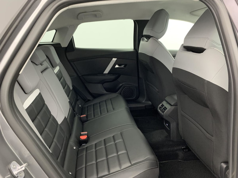 Détection de sous-gonflage / Volant cuir pleine fleur / Elargisseurs d'aile et bas de caisse Noir Mat / Console centrale haute avec rangements et accoudoir / Accès et démarrage mains libres Proximity 2 Télécommandes 3 boutons (verrouillage, coffre et déverrouillage). / Plancher de coffre à 2 positions / Aérateurs centraux en rang 2 / ABS + AFU + ESP + REF / Poche aumônière au dos des sièges AV / Suspension Citroën Advanced Comfort / Siège conducteur avec réglage lombaire / Eclairage d'accompagnement sous les rétroviseurs extérieurs / Ecran central 10" tactile: - Système audio numérique (DAB) 6 HPs - Apple CarPlay et Android Auto sans fil - Reconnaissance vocale - Kit mains libres Bluetooth - Boîtier télématique : Appel d'urgence et Citroën Assistance / Sabot AV Silver Chrome Satin / Feux diurnes à LED avec signature lumineuse / Feux AR à LED avec signature lumineuse / Pack Safety - Active Safety Brake (fonctionne de 30 à 80 km/h et détecte les piétons et les cyclistes) - Alerte active de Franchissement Involontaire de Ligne - Alerte Attention Conducteur - Alerte Risque Collision - Allumage automatique des feux de croisement - Coffee Break Alert - Reconnaissance des panneaux de vitesse et recommandation - Régulateur-limiteur de vitesse - Témoin de non-bouclage des ceintures de sécurité conducteur et passagers : Allumage automatique des feux de croisement Régulateur-limiteur de vitesse Coffee Break Alert Alerte attention conducteur Alerte Risque Collision Alerte active de Franchissement Involontaire de ligne Reconnaissance des panneaux de vitesse et recommandation Témoin de non-bouclage des ceintures de sécurité conducteur et passager Active Safety Brake (freinage automatique d'urgence) / Pack Drive Assist - Active Safety Brake 2.0 (fonctionne à l'aide d'un radar de 7 à 140 km/h, y compris de nuit) - Commutation automatique des feux de route - Reconnaissance étendue des panneaux et recommandation de vitesse - Régulateur de vitesse adaptatif avec fonction Stop & Go (dispositif ajustant la vitesse en fonction du véhicule précédent) - Système de surveillance d'angle mort : Commutation automatique des feux de route Système de surveillance d'angle mort Active Safety Brake 2.0 Fonctionne à l'aide d'un Radar de 7 à 140 km/h, même de nuit et détecte les cyclistes Reconnaissance étendue des panneaux et recommandation de vitesse Régulateur de vitesse adaptatif avec fonction Stop & Go (dispositif ajustant la vitesse en fonction du véhicule précédent) / Garnissage Toile enduite Noir/Toile enduite Gris Clair Ambiance Metropolitan Grey + Sièges Advanced Comfort / Color Clips Gold Satin / Lécheurs de vitres latérales Noir / Rétroviseur intérieur électrochrome / Boîte automatique 6 rapports / 2 prises USB au rang 1 (1 type C + 1 type A) + 1 prise USB en rang 2 (type A) / Pack Navigation Connectée - Navigation 3D Connectée sur écran central 10'' tactile - Combiné numérique couleur 7'' TFT - Fonction Top Rear Vision de la caméra de recul - Interface personnalisable avec Widgets - Reconnaissance vocale avec langage naturel : Top Rear Vision de la caméra de recul Navigation 3D Connectée sur écran central 10'' tactile - Système de navigation TomTom - Reconnaissance vocale avec langage naturel - Interface personnalisable - Services Connect PLUS additionnels pour une période d'essai de 12 mois Interface personnalisable avec Widgets Combiné numérique couleur 7" TFT / Frein de stationnement électrique automatique / Poignées de portes extérieures couleur caisse / Kit de dépannage provisoire de pneumatiques / / Véhicules équivalents: 308 - Mégane - Golf
