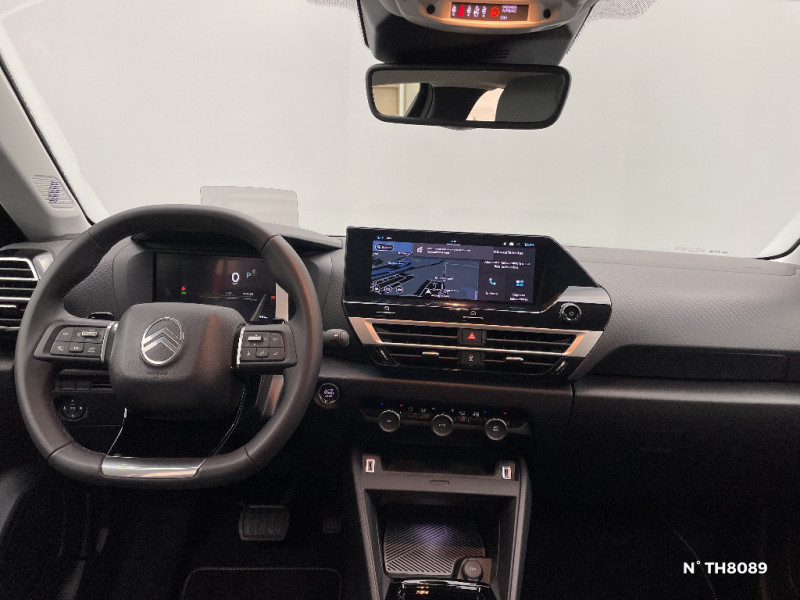 Pack Safety - Active Safety Brake (fonctionne de 30 à 80 km/h et détecte les piétons et les cyclistes) - Alerte active de Franchissement Involontaire de Ligne - Alerte Attention Conducteur - Alerte Risque Collision - Allumage automatique des feux de croisement - Coffee Break Alert - Reconnaissance des panneaux de vitesse et recommandation - Régulateur-limiteur de vitesse - Témoin de non-bouclage des ceintures de sécurité conducteur et passagers / Plafonniers AV et AR à lampes / Plancher de coffre à 2 positions / Poche aumônière au dos des sièges AV / Poignées de portes extérieures couleur caisse / Rétroviseur intérieur électrochrome / Sabot AV Silver Chrome Satin / Sécurité enfants mécanique / Services Connect PLUS Gratuit pendant une période d'essai de 12 mois / Siège conducteur avec réglage lombaire / Surtapis AV et AR / Suspension Citroën Advanced Comfort / TCS (Contrôle de la traction) / Volant cuir pleine fleur / 2 Prises USB au rang 1 (1 type A + 1 type C pour fonction Mirror Screen) + 1 Prise USB au rang 2 (type A) / 2 prises USB au rang 1 (1 type C + 1 type A) + 1 prise USB en rang 2 (type A) / Pare-soleil avec miroir occultable côtés conducteur et passager / Console centrale haute avec rangements fermés et 2 porte-gobelets et accoudoir coulissant / Décor de panneaux de porte en Tissu Curitiba Blanc Sonic / Détection de sous-gonflage / Direction à assistance électrique variable / Eclairage d'accompagnement sous les rétroviseurs extérieurs / Eclairage d'accueil et d'accompagnement / Ecran central 10" tactile: - Système audio numérique (DAB) 6 HPs - Apple CarPlay et Android Auto sans fil - Reconnaissance vocale - Kit mains libres Bluetooth - Boîtier télématique : Appel d'urgence et Citroën Assistance / Elargisseurs d'aile et bas de caisse Noir Mat / Essuie-vitre AV automatique (capteur de pluie) / Feux AR à LED avec signature lumineuse / Feux diurnes à LED avec signature lumineuse / Fixations ISOFIX sur sièges latéraux AR (3 points d'encrage avec Top TetherTether) / Frein de stationnement électrique automatique / Garnissage Toile enduite Noir/Toile enduite Gris Clair Ambiance Metropolitan Grey + Sièges Advanced Comfort / Jantes alliage 18" AMBER Diamantées / Jupe AR Noir Brilliant / Kit de dépannage provisoire de pneumatiques / Lécheurs de vitres latérales Noir / Médaillons de porte AV en Tissu Brasilia - Noir Mistral / Pack Drive Assist - Active Safety Brake 2.0 (fonctionne à l'aide d'un radar de 7 à 140 km/h, y compris de nuit) - Commutation automatique des feux de route - Reconnaissance étendue des panneaux et recommandation de vitesse - Régulateur de vitesse adaptatif avec fonction Stop & Go (dispositif ajustant la vitesse en fonction du véhicule précédent) - Système de surveillance d'angle mort / Accès et démarrage mains libres Proximity 2 Télécommandes 3 boutons (verrouillage, coffre et déverrouillage). / Accoudoir central AR avec porte-gobelets et trappe à skis / Aérateurs centraux en rang 2 / Bande de dossiers en Tissu Curitiba Blanc Sonic / Boîte automatique 6 rapports / Clignotants impulsionnels / Color Clips Gold Satin / Commandes au volant du système audio et du régulateur-limiteur de vitesse / Condamnation centralisée avec Plip et condamnation automatique du coffre et des portes en roulant / Pack Navigation Connectée - Navigation 3D Connectée sur écran central 10'' tactile - Combiné numérique couleur 7'' TFT - Fonction Top Rear Vision de la caméra de recul / Pack Navigation Connectée - Navigation 3D Connectée sur écran central 10'' tactile - Combiné numérique couleur 7'' TFT - Fonction Top Rear Vision de la caméra de recul - Interface personnalisable avec Widgets - Reconnaissance vocale avec langage naturel / ABS + AFU + ESP + REF