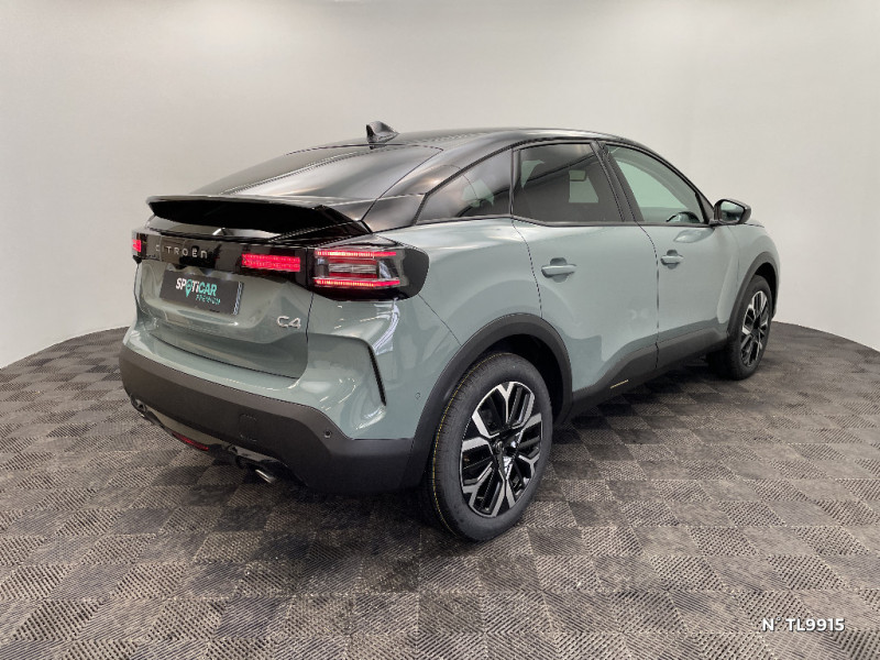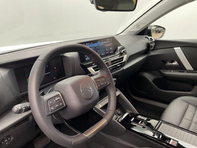 Sabot AV Silver Chrome Satin / Sécurité enfants mécanique / Services Connect PLUS Gratuit pendant une période d'essai de 12 mois / Siège conducteur avec réglage lombaire / Surtapis AV et AR / Suspension Citroën Advanced Comfort / TCS (Contrôle de la traction) / Volant cuir pleine fleur / 2 Prises USB au rang 1 (1 type A + 1 type C pour fonction Mirror Screen) + 1 Prise USB au rang 2 (type A) / 2 prises USB au rang 1 (1 type C + 1 type A) + 1 prise USB en rang 2 (type A) / Accoudoir central AR avec porte-gobelets et trappe à skis / Aérateurs centraux en rang 2 / Bande de dossiers en Tissu Curitiba Blanc Sonic / Boîte automatique 6 rapports / Clignotants impulsionnels / Color Clips Gold Satin / ABS + AFU + ESP + REF / Accès et démarrage mains libres Proximity 2 Télécommandes 3 boutons (verrouillage, coffre et déverrouillage). / Commandes au volant du système audio et du régulateur-limiteur de vitesse / Condamnation centralisée avec Plip et condamnation automatique du coffre et des portes en roulant / Console centrale haute avec rangements fermés et 2 porte-gobelets et accoudoir coulissant / Décor de panneaux de porte en Tissu Curitiba Blanc Sonic / Détection de sous-gonflage / Direction à assistance électrique variable / Eclairage d'accompagnement sous les rétroviseurs extérieurs / Eclairage d'accueil et d'accompagnement / Ecran central 10" tactile: - Système audio numérique (DAB) 6 HPs - Apple CarPlay et Android Auto sans fil - Reconnaissance vocale - Kit mains libres Bluetooth - Boîtier télématique : Appel d'urgence et Citroën Assistance / Elargisseurs d'aile et bas de caisse Noir Mat / Essuie-vitre AV automatique (capteur de pluie) / Feux AR à LED avec signature lumineuse / Feux diurnes à LED avec signature lumineuse / Fixations ISOFIX sur sièges latéraux AR (3 points d'encrage avec Top TetherTether) / Frein de stationnement électrique automatique / Garnissage Toile enduite Noir/Toile enduite Gris Clair Ambiance Metropolitan Grey + Sièges Advanced Comfort / Jantes alliage 18" AMBER Diamantées / Jupe AR Noir Brilliant / Kit de dépannage provisoire de pneumatiques / Lécheurs de vitres latérales Noir / Médaillons de porte AV en Tissu Brasilia - Noir Mistral / Pack Drive Assist - Active Safety Brake 2.0 (fonctionne à l'aide d'un radar de 7 à 140 km/h, y compris de nuit) - Commutation automatique des feux de route - Reconnaissance étendue des panneaux et recommandation de vitesse - Régulateur de vitesse adaptatif avec fonction Stop & Go (dispositif ajustant la vitesse en fonction du véhicule précédent) - Système de surveillance d'angle mort / Pack Navigation Connectée - Navigation 3D Connectée sur écran central 10'' tactile - Combiné numérique couleur 7'' TFT - Fonction Top Rear Vision de la caméra de recul / Pack Navigation Connectée - Navigation 3D Connectée sur écran central 10'' tactile - Combiné numérique couleur 7'' TFT - Fonction Top Rear Vision de la caméra de recul - Interface personnalisable avec Widgets - Reconnaissance vocale avec langage naturel / Pack Safety - Active Safety Brake (fonctionne de 30 à 80 km/h et détecte les piétons et les cyclistes) - Alerte active de Franchissement Involontaire de Ligne - Alerte Attention Conducteur - Alerte Risque Collision - Allumage automatique des feux de croisement - Coffee Break Alert - Reconnaissance des panneaux de vitesse et recommandation - Régulateur-limiteur de vitesse - Témoin de non-bouclage des ceintures de sécurité conducteur et passagers / Pare-soleil avec miroir occultable côtés conducteur et passager / Plafonniers AV et AR à lampes / Plancher de coffre à 2 positions / Poche aumônière au dos des sièges AV / Poignées de portes extérieures couleur caisse / Rétroviseur intérieur électrochrome