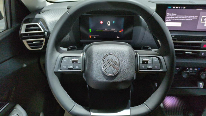 2 prises usb au rang 1 (1 type c + 1 type a) + 1 prise usb en rang 2 (type a) / Abs + afu + esp + ref / Accès et démarrage mains libres proximity / Boîte automatique 6 rapports / Console centrale haute avec rangements et accoudoir / Détection de sous-gonflage / Ecran central 10" tactile : système audio numérique (dab) 6 hps + apple carplay et android auto sans fil + kit mains libres bluetooth / Elargisseurs d'aile et bas de caisse noir mat / Feux ar à led avec signature lumineuse / Feux diurnes à led avec signature lumineuse / Frein de stationnement électrique automatique / Garnissage toile enduite noir/toile enduite gris clair ambiance metropolitan grey + sièges advanced comfort / Jantes alliage 18" amber diamantées / Kit de dépannage provisoire de pneumatiques / Latéraux av et rideaux / Lécheurs de vitres latérales noir / Pack drive assist : active safety brake 2.0 + commutation automatique des feux de route + reconnaissance étendue des panneaux et recommandation de vitesse + régulateur de vitesse adaptatif avec fonction stop & go + système de surveillance d'angle mort / Pack navigation connectée : navigation 3d connectée sur écran central 10'' tactile + combiné numérique couleur 7'' tft + fonction top rear vision de la caméra de recul + interface personnalisable avec widgets / Pack safety : alerte active de franchissement involontaire de ligne + alerte attention conducteur + alerte risque collision + allumage automatique des feux de croisement + coffee break alert + reconnaissance des panneaux de vitesse et recommandation / Plancher de coffre à 2 positions / Poignées de portes extérieures couleur caisse / Rétroviseur intérieur électrochrome / Siège conducteur avec réglage lombaire / Suspension citroën advanced comfort / Teinte de caisse métallisée blanc okénite / Toit bi-ton noir perla nera / Volant cuir pleine fleur