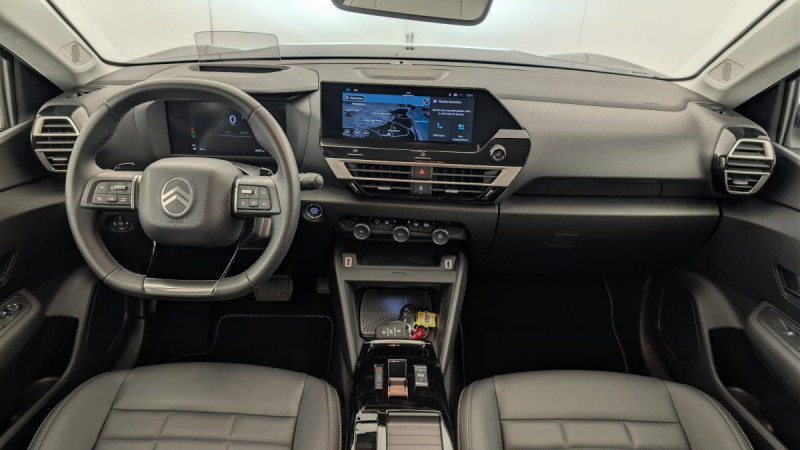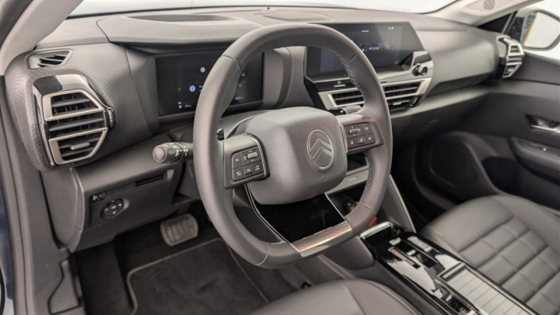 Détection de sous-gonflage / Volant cuir pleine fleur / Console centrale haute avec rangements et accoudoir / Accès et démarrage mains libres Proximity 2 Télécommandes 3 boutons (verrouillage, coffre et déverrouillage) / Plancher de coffre à 2 positions / ABS + AFU + ESP + REF / Poche aumônière au dos des sièges AV / Suspension Citroën Advanced Comfort / Siège conducteur avec réglage lombaire / Eclairage d'accompagnement sous les rétroviseurs extérieurs / Ecran central 10" tactile: Système audio numérique (DAB) 6 HPs Apple CarPlay et Android Auto sans fil Reconnaissance vocale Kit mains libres Bluetooth Boîtier télématique : Appel d'urgence / Condamnation centralisée avec Plip et condamnation automatique du coffre et des portes en roulant / Jantes alliage 18" AMBER Diamantées / Feux diurnes à LED avec signature lumineuse / Feux AR à LED avec signature lumineuse / Pack Safety : Allumage automatique des feux de croisement Régulateur-limiteur de vitesse Coffee Break Alert Alerte attention conducteur Alerte Risque Collision Alerte active de Franchissement Involontaire de ligne Reconnaissance des panneaux de vitesse et recommandation Témoin de non-bouclage des ceintures de sécurité conducteur et passager Active Safety Brake (freinage automatique d'urgence) / Pack Drive Assist : Commutation automatique des feux de route Système de surveillance d'angle mort Reconnaissance étendue des panneaux et recommandation de vitesse Active Safety Brake 2.0 Fonctionne à l'aide d'un radar de 7 à 140 km/h, y compris de nuit) Régulateur de vitesse adaptatif avec fonction Stop & Go (dispositif ajustant la vitesse en fonction du véhicule précédent) / Garnissage Toile enduite Noir/Toile enduite Gris Clair Ambiance Metropolitan Grey + Sièges Advanced Comfort / Rétroviseur intérieur électrochrome / Boîte automatique 6 rapports / Pack Navigation Connectée : Top Rear Vision de la caméra de recul Navigation 3D Connectée sur écran central 10'' tactile - Système de navigation TomTom - Reconnaissance vocale avec langage naturel - Interface personnalisable Interface personnalisable avec Widgets Reconnaissance vocale avec langage naturel Combiné numérique couleur 7" TFT / TCS (Contrôle de la traction) / Frein de stationnement électrique automatique / Poignées de portes extérieures couleur caisse / Kit de dépannage provisoire de pneumatiques / / Véhicules équivalents: 308 - Mégane - Golf