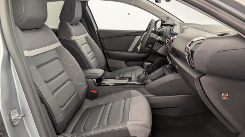 Détection de sous-gonflage / ABS avec REF, AFU et ESP / Pack Safety : Régulateur-limiteur de vitesse Coffee Break Alert Alerte attention conducteur Alerte Risque Collision Témoin de non-bouclage des ceintures de sécurité conducteur et passagers Alerte active de Franchissement Involontaire de ligne Active Safety Brake Reconnaissance des panneaux de vitesse et recommandation / Console centrale haute avec rangements et accoudoir / Pack Safety 2 : Active Safety Brake 2.0 Fonctionne à l'aide d'un Radar de 7 à 140 km/h, même de nuit et détecte les cyclistes Reconnaissance étendue des panneaux et recommandation de vitesse / Plancher de coffre à 2 positions / Projecteurs antibrouillard LED avec éclairage statique d'intersection / Projecteurs LED avec signature lumineuse en V / Garnissage textile effet cuir Noir/Tissu Gris Ambiance Metropolitan Grey + Sièges Advanced Comfort / Suspension Citroën Advanced Comfort / Rétroviseur intérieur électrochrome / Jantes alliage 18" AEROBLADE Diamantées / Pack Access & Nav : Accès et démarrage mains libres Proximity (verrouillage, coffre et déverrouillage). Tiroir de planche de bord Combiné numérique couleur avec rétro-éclairage Top Rear Vision de la caméra de recul My Citroën Drive Plus: navigation sur tablette tactile 10'' Comprend le système de navigation TomTom, la reconnaissance vocale avec langage naturel, l?interface personnalisable / My Citroën Play : Kit mains libres Bluetooth, Mirror Screen sans fil, compatible Android Auto et Apple CarPlay, Système audio numérique (DAB) MP3 6 HP, Tablette tactile 10" / Pack Drive Assist : Système de surveillance d'angle mort Aide au stationnement AV Commutation automatique des feux de route Aide au stationnement latéral / Essuie-vitre AV automatique (capteur de pluie) / Frein de stationnement électrique automatique / Pack Style : Jonc chromé sur les lécheurs de vitres latérales Vitres et lunette AR surteintées / Kit de dépannage provisoire de pneumatiques / / Véhicules équivalents: 308 - Mégane - Golf