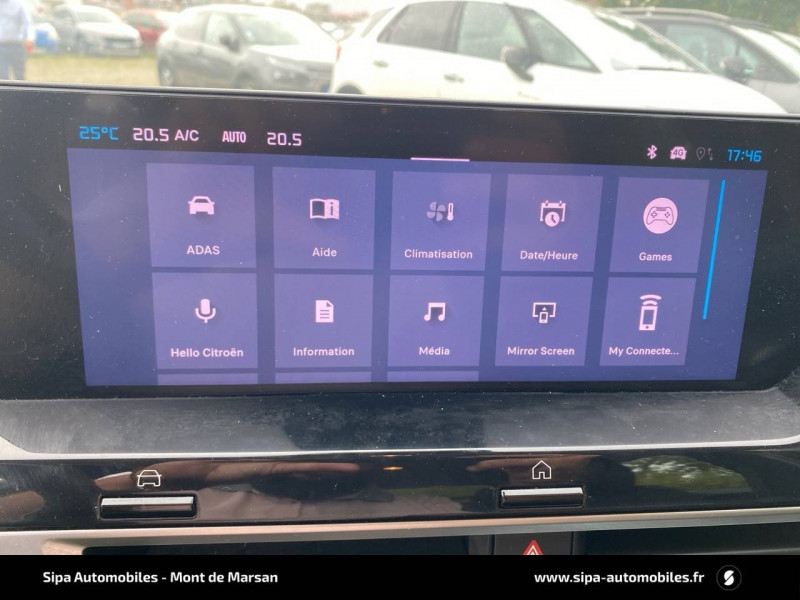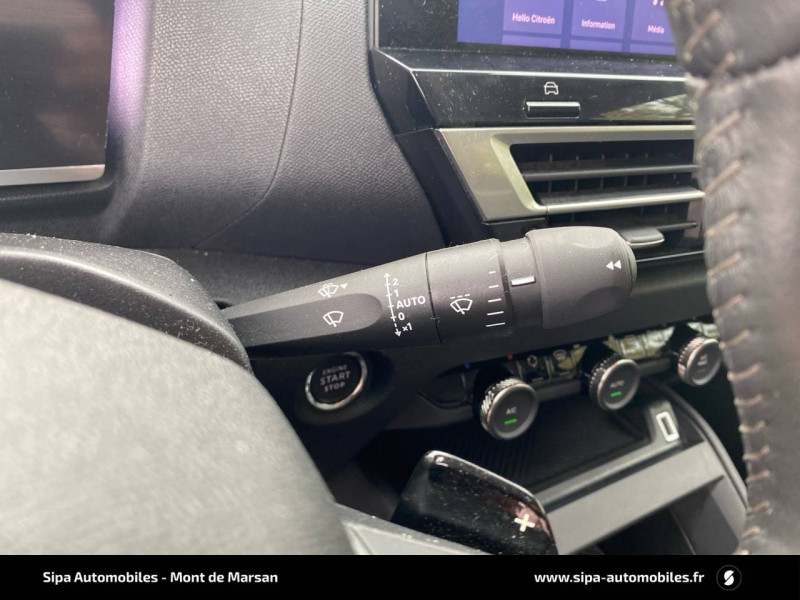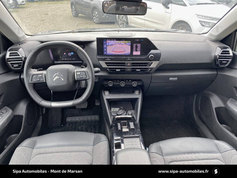1 prise USB en rang 2 (type A) / 2 prises USB au rang 1 (1 type C + 1 type A) / 2 prises USB au rang 2 (1 type C + 1 type A) / ABS avec REF, AFU et ESP / Aérateurs centraux en rang 2 / Combiné numérique couleur / Console centrale haute avec rangements et accoudoir / Détection de sous-gonflage / Elargisseurs d'aile et bas de caisse Noir Mat / Essuie-vitre AV automatique (capteur de pluie) / Frein de stationnement électrique automatique / Garnissage tissu Chevrons Gris/Textile effet cuir Noir Ambiance Urban Grey + Sièges Advanced Comfort / Jantes alliage 18" AEROBLADE Gris Anthra / Jupe AR Noir Brilliant / Kit de dépannage provisoire de pneumatiques / Mirror Screen sans fil / My Citroën Assist : Citroën Connect Box avec Pack SOS et assistance inclus / My Citroën Play : Kit mains libres Bluetooth, Mirror Screen sans fil, compatible Android Auto et Apple CarPlay, Système audio numérique (DAB) MP3 6 HP, Tablette tactile 10" / Pack Color Noir Brillant / Pack Safety - Active Safety Brake - Alerte active de Franchissement Involontaire de Ligne - Alerte Attention Conducteur - Alerte Risque Collision - Coffee Break Alert - Reconnaissance des panneaux de vitesse et recommandation - Régulateur-limiteur de vitesse - Témoin de non-bouclage des ceintures de sécurité conducteur et passagers / Poche aumônière au dos des sièges AV / Poignées de portes extérieures couleur caisse / Prise 12 V en rang 1 / Projecteurs antibrouillard LED avec éclairage statique d'intersection / Projecteurs LED avec signature lumineuse en V / Services Connect PLUS Comprend les services Connect Plus pour une période de 1 an / Sièges Advanced Comfort / Suspension Citroën Advanced Comfort / Tablette tactile 10"