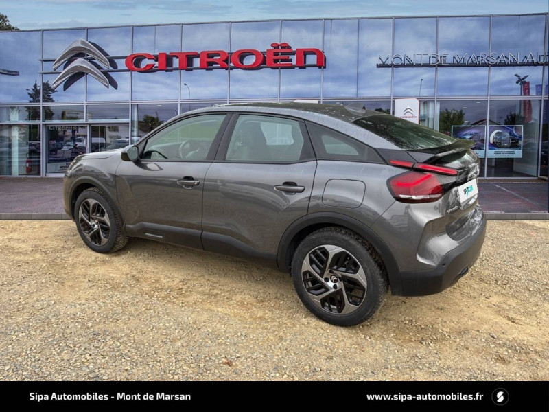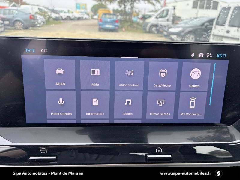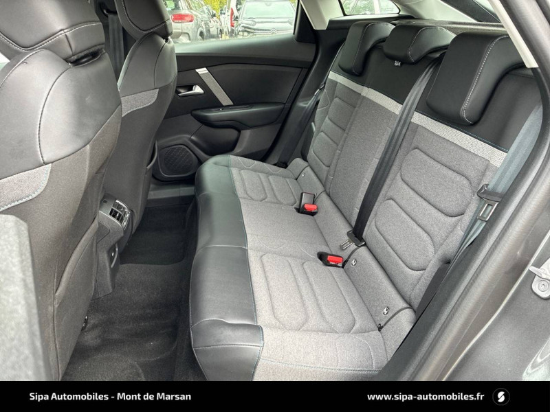 1 prise USB en rang 2 (type A) / 2 prises USB au rang 1 (1 type C + 1 type A) / ABS avec REF, AFU et ESP / Aérateurs centraux en rang 2 / Combiné numérique couleur avec rétro-éclairage / Console centrale haute avec rangements et accoudoir / Détection de sous-gonflage / Elargisseurs d'aile et bas de caisse Noir Mat / Essuie-vitre AV automatique (capteur de pluie) / Frein de stationnement électrique automatique / Garnissage tissu Chevrons Gris/Textile effet cuir Noir Ambiance Urban Grey + Sièges Advanced Comfort / Jantes alliage 18" AEROBLADE Gris Anthra / Jupe AR Noir Brilliant / Kit de dépannage provisoire de pneumatiques / My Citroën Assist : Citroën Connect Box avec Pack SOS et assistance inclus / Pack Color Glossy Black / Pack Safety - Active Safety Brake - Alerte active de Franchissement Involontaire de Ligne - Alerte Attention Conducteur - Alerte Risque Collision - Coffee Break Alert - Reconnaissance des panneaux de vitesse et recommandation - Régulateur-limiteur de vitesse - Témoin de non-bouclage des ceintures de sécurité conducteur et passagers / Plancher de coffre à 2 positions / Poche aumônière au dos des sièges AV / Poignées de portes extérieures couleur caisse / Prise 12 V en rang 1 / Projecteurs antibrouillard LED avec éclairage statique d'intersection / Projecteurs LED avec signature lumineuse en V / Siège passager avec réglage lombaire / Sièges Advanced Comfort / Suspension Citroën Advanced Comfort / Système audio numérique (DAB) MP3 6 HP / Tiroir de planche de bord