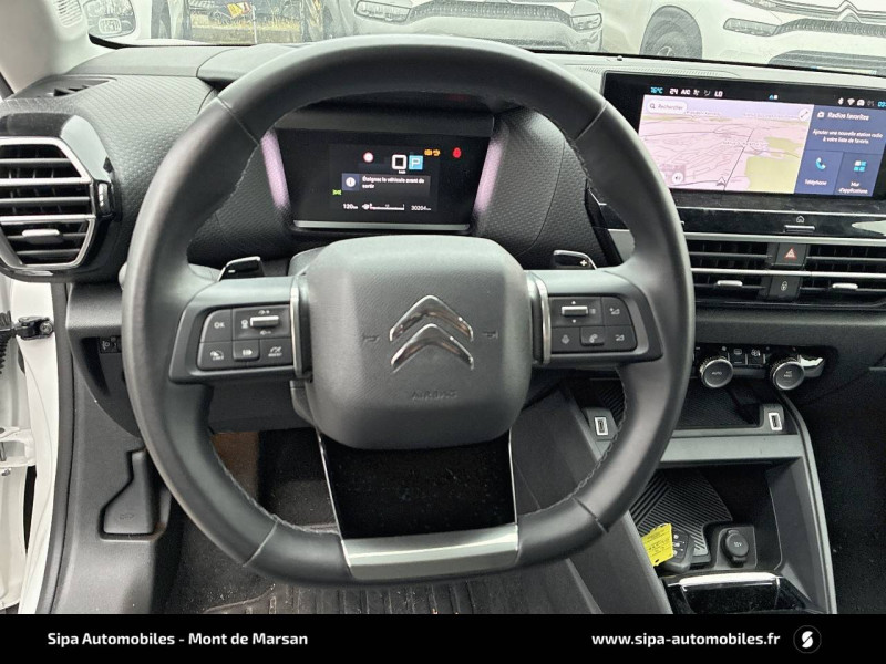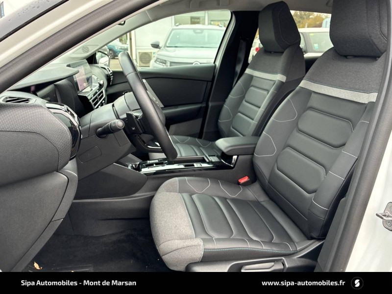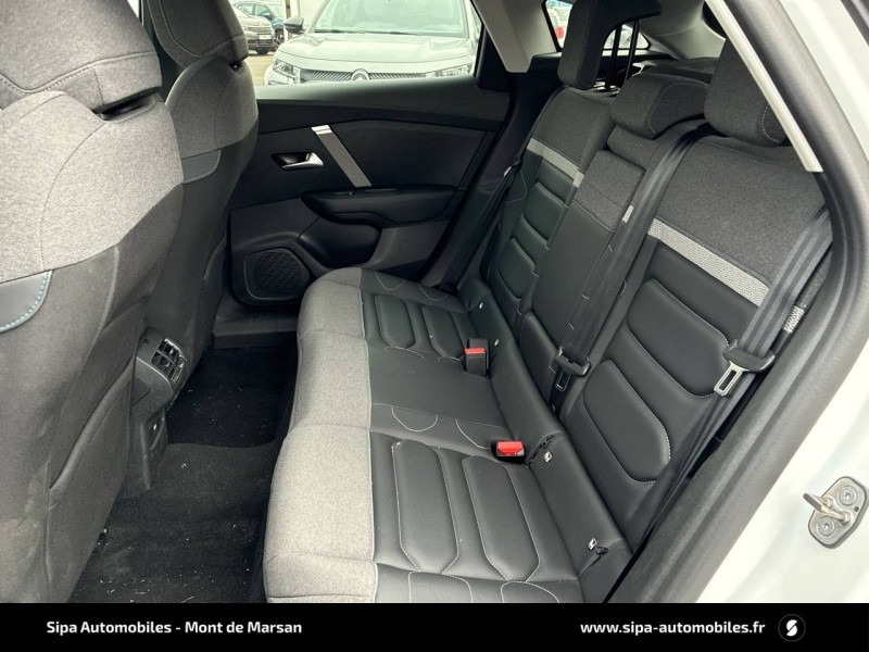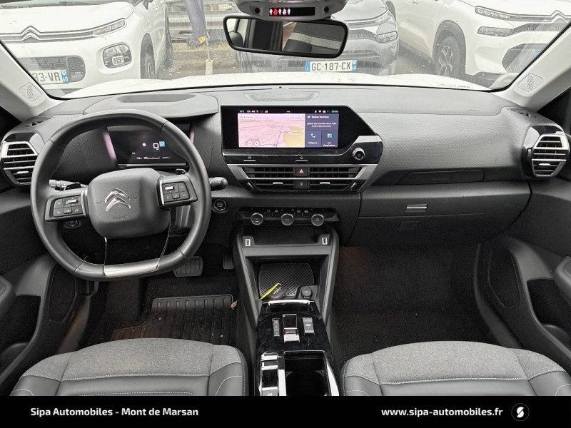 1 prise USB en rang 2 (type A) / 2 prises USB au rang 1 (1 type C + 1 type A) / ABS avec REF, AFU et ESP / Accès et démarrage mains libres Proximity / Aérateurs centraux en rang 2 / Combiné numérique couleur avec rétro-éclairage / Commutation automatique des feux de route / Console centrale haute avec rangements et accoudoir / Détection de sous-gonflage / Elargisseurs d'aile et bas de caisse Noir Mat / Essuie-vitre AV automatique (capteur de pluie) / Frein de stationnement électrique automatique / Garnissage textile effet cuir Noir/Tissu Gris Ambiance Metropolitan Grey + Sièges Advanced Comfort / Jantes alliage 18" AEROBLADE Diamantées / Jupe AR Noir Brilliant / Kit de dépannage provisoire de pneumatiques / My Citroën Drive Plus: navigation sur tablette tactile 10'' comprend le système de navigation 3D TomTom, la reconnaissance vocale avec langage naturel, l'interface personnalisable, et durant 3 ans les services My Citroën Drive Plus (inclut les services «Zones de danger», «Info Trafic», «Stations-service», «Parkings, «Météo» et «Recherche locale») / My Citroën Play - Mirror Screen sans fils, compatible Android Auto et Apple CarPlay, Système audio numérique (DAB) MP3 6 HP,Tablette tactile 10" / Pack Color Glossy Silver / Pack Drive Assist Aide au stationnement AV et latéral, Commutation automatique des feux de route, Régulateur de vitesse adaptatif avec fonction Stop & Go,Système de surveillance d'angle mort / Pack Safety 2 / Pack Safety - Active Safety Brake - Alerte active de Franchissement Involontaire de Ligne - Alerte Attention Conducteur - Alerte Risque Collision - Coffee Break Alert - Reconnaissance des panneaux de vitesse et recommandation - Régulateur-limiteur de vitesse - Témoin de non-bouclage des ceintures de sécurité conducteur et passagers / Plancher de coffre à 2 positions / Poche aumônière au dos des sièges AV / Poignées de portes extérieures couleur caisse / Prise 12 V en rang 1 / Projecteurs antibrouillard LED avec éclairage statique d'intersection / Projecteurs LED avec signature lumineuse en V / Rétroviseur intérieur électrochrome / Siège conducteur avec réglage lombaire et accoudoir / Sièges Advanced Comfort / Smart Pad Support Citroen / Suspension Citroën Advanced Comfort / Système audio numérique (DAB) MP3 6 HP / Tiroir de planche de bord / Volant cuir pleine fleur