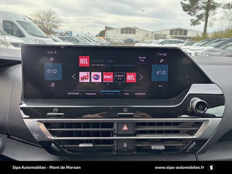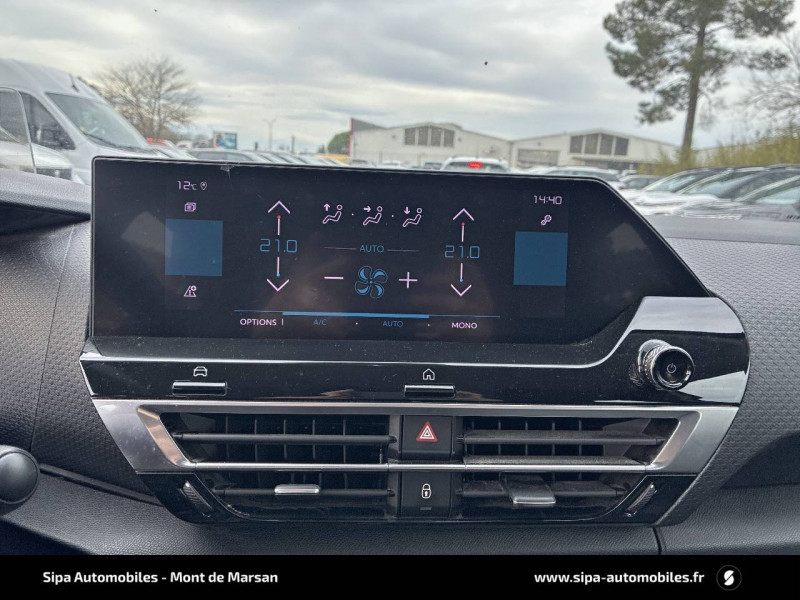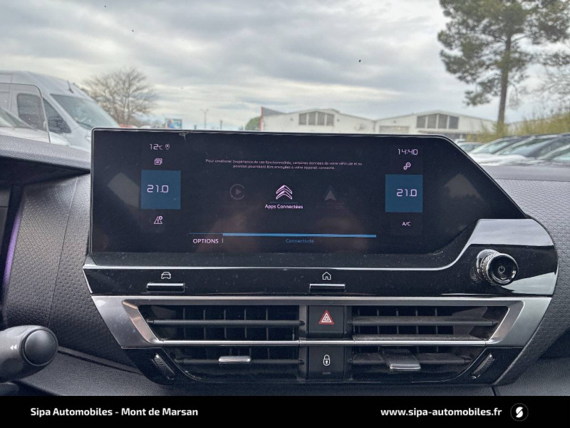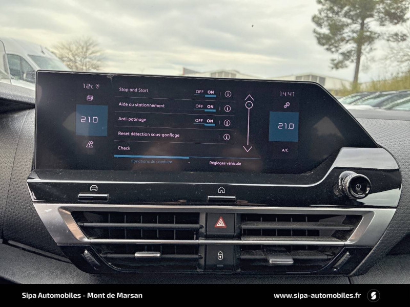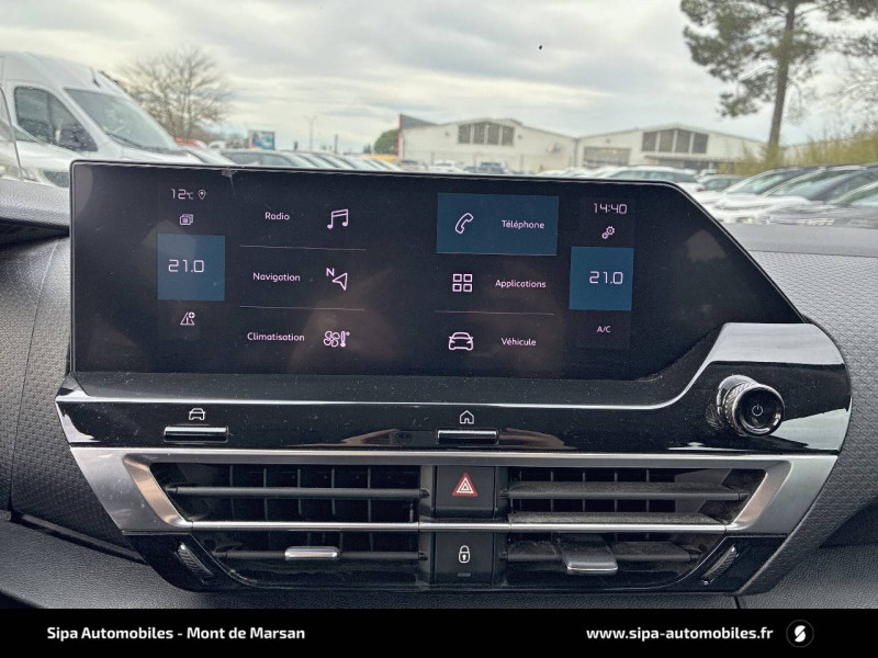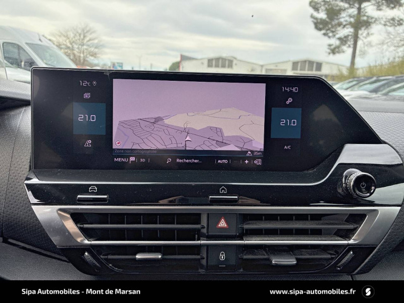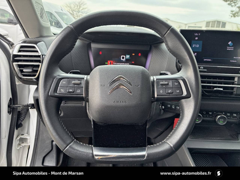 1 prise USB en rang 2 (type A) / 2 prises USB au rang 1 (1 type C + 1 type A) / ABS avec REF, AFU et ESP / Aérateurs centraux en rang 2 / Combiné numérique couleur avec rétro-éclairage / Console centrale haute avec rangements et accoudoir / Détection de sous-gonflage / Elargisseurs d'aile et bas de caisse Noir Mat / Essuie-vitre AV automatique (capteur de pluie) / Frein de stationnement électrique automatique / Garnissage tissu Chevrons Gris/Textile effet cuir Noir Ambiance Urban Grey + Sièges Advanced Comfort / Jantes alliage 18" AEROBLADE Gris Anthra / Jupe AR Noir Brilliant / Kit de dépannage provisoire de pneumatiques / My Citroën Assist: Citroën Connect Box avec Pack SOS et assistance inclus / My Citroën Drive": Citroën Connect Nav numérique sur tablette tactile 10'' comprend le système de navigation TomTom, la reconnaissance vocale et durant 3 ans les services Connect Nav (inclut les services « Zones de danger », « Info Trafic », « Stations-service », « Parkings », « Météo » et « Recherche locale »). / My Citroën Play - Mirror Screen sans fils, compatible Android Auto et Apple CarPlay, Système audio numérique (DAB) MP3 6 HP,Tablette tactile 10" / Pack Color Glossy Black / Pack Safety - Active Safety Brake - Alerte active de Franchissement Involontaire de Ligne - Alerte Attention Conducteur - Alerte Risque Collision - Coffee Break Alert - Reconnaissance des panneaux de vitesse et recommandation - Régulateur-limiteur de vitesse - Témoin de non-bouclage des ceintures de sécurité conducteur et passagers / Plancher de coffre à 2 positions / Poche aumônière au dos des sièges AV / Poignées de portes extérieures couleur caisse / Prise 12 V en rang 1 / Projecteurs antibrouillard LED avec éclairage statique d'intersection / Projecteurs LED avec signature lumineuse en V / Siège conducteur avec réglage lombaire et accoudoir / Suspension Citroën Advanced Comfort / Tiroir de planche de bord