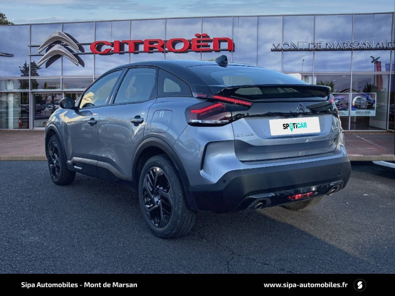 1 prise USB en rang 2 (type A) / 2 prises USB au rang 1 (1 type C + 1 type A) / 2 prises USB au rang 2 (1 type C + 1 type A) / ABS avec REF, AFU et ESP / Aérateurs centraux en rang 2 / Combiné numérique couleur / Console centrale haute avec rangements et accoudoir / Détection de sous-gonflage / Elargisseurs d'aile et bas de caisse Noir Mat / Essuie-vitre AV automatique (capteur de pluie) / Frein de stationnement électrique automatique / Garnissage tissu Chevrons Gris/Textile effet cuir Noir Ambiance Urban Grey + Sièges Advanced Comfort / Jantes alliage 18" AEROBLADE Gris Anthra / Jupe AR Noir Brilliant / Kit de dépannage provisoire de pneumatiques / Mirror Screen sans fil / My Citroën Assist : Citroën Connect Box avec Pack SOS et assistance inclus / My Citroën Play : Kit mains libres Bluetooth, Mirror Screen sans fil, compatible Android Auto et Apple CarPlay, Système audio numérique (DAB) MP3 6 HP, Tablette tactile 10" / Pack Color Noir Brillant / Pack Safety - Active Safety Brake - Alerte active de Franchissement Involontaire de Ligne - Alerte Attention Conducteur - Alerte Risque Collision - Coffee Break Alert - Reconnaissance des panneaux de vitesse et recommandation - Régulateur-limiteur de vitesse - Témoin de non-bouclage des ceintures de sécurité conducteur et passagers / Poche aumônière au dos des sièges AV / Poignées de portes extérieures couleur caisse / Prise 12 V en rang 1 / Projecteurs antibrouillard LED avec éclairage statique d'intersection / Projecteurs LED avec signature lumineuse en V / Services Connect PLUS Comprend les services Connect Plus pour une période de 1 an / Sièges Advanced Comfort / Suspension Citroën Advanced Comfort / Tablette tactile 10"