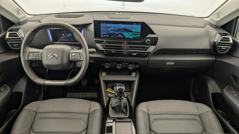 Détection de sous-gonflage / ABS avec REF, AFU et ESP / Pack Safety : Régulateur-limiteur de vitesse Coffee Break Alert Alerte attention conducteur Alerte Risque Collision Témoin de non-bouclage des ceintures de sécurité conducteur et passagers Alerte active de Franchissement Involontaire de ligne Active Safety Brake Reconnaissance des panneaux de vitesse et recommandation / Console centrale haute avec rangements et accoudoir / Plancher de coffre à 2 positions / Projecteurs antibrouillard LED avec éclairage statique d'intersection / Projecteurs LED avec signature lumineuse en V / Aérateurs centraux en rang 2 / Suspension Citroën Advanced Comfort / Siège conducteur avec réglage lombaire / Rétroviseur intérieur électrochrome / Jantes alliage 18" AEROBLADE Diamantées / Boîtier télématique: Appel d'urgence / Système audio numérique 6 HP (DAB) / Pack Safety 2 : Active Safety Brake 2.0 Fonctionne à l'aide d'un Radar de 7 à 140 km/h, même de nuit et détecte les cyclistes Reconnaissance étendue des panneaux et recommandation de vitesse / Garnissage Toile enduite Noir/Tissu Gris Ambiance Metropolitan Grey + Sièges Advanced Comfort / Pack Drive Assist : Système de surveillance d'angle mort Aide au stationnement AV Commutation automatique des feux de route Aide au stationnement latéral / Pack Access & Nav: Accès et démarrage mains libres Proximity (verrouillage, coffre et déverrouillage). Tiroir de planche de bord Combiné numérique couleur avec rétro-éclairage Top Rear Vision de la caméra de recul Navigation 3D sur écran central 10" tactile Comprend le système de navigation TomTom, la reconnaissance vocale avec langage naturel, l'interface personnalisable / Essuie-vitre AV automatique (capteur de pluie) / Frein de stationnement électrique automatique / Pack Style : Jonc chromé sur les lécheurs de vitres latérales Vitres et lunette AR surteintées / Kit de dépannage provisoire de pneumatiques / / Véhicules équivalents: 308 - Mégane - Golf