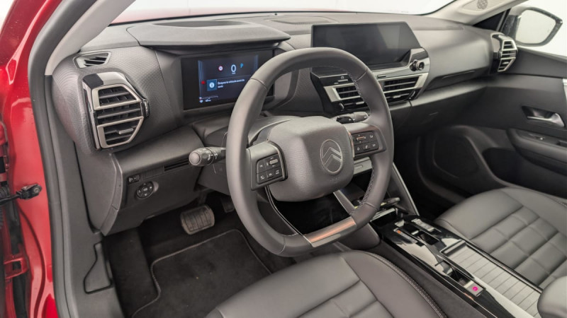 Détection de sous-gonflage / Volant cuir pleine fleur / Accès et démarrage mains libres Proximity (verrouillage, coffre et déverrouillage). / Plancher de coffre à 2 positions / ABS + AFU + ESP + REF / Suspension Citroën Advanced Comfort / Direction à assistance électrique variable / Siège conducteur avec réglage lombaire / Eclairage d'accueil et d'accompagnement / Pare-soleil avec miroir occultable côtés conducteur et passager / Ecran central 10" tactile: - Système audio numérique (DAB) 6 HPs - Apple CarPlay et Android Auto sans fil - Reconnaissance vocale - Kit mains libres Bluetooth - Boîtier télématique : Appel d'urgence / Console centrale haute avec rangements fermés et 2 porte-gobelets et accoudoir coulissant / Fixations ISOFIX sur sièges latéraux AR (3 points d'encrage avec Top TetherTether) / Commandes au volant du système audio et du régulateur-limiteur de vitesse / Jantes alliage 18" AMBER Diamantées / Feux diurnes à LED avec signature lumineuse / Feux AR à LED avec signature lumineuse / Pack Safety : Allumage automatique des feux de croisement Coffee Break Alert Alerte attention conducteur Alerte Risque Collision Alerte active de Franchissement Involontaire de ligne Reconnaissance des panneaux de vitesse et recommandation Témoin de non-bouclage des ceintures de sécurité conducteur et passager Active Safety Brake (freinage automatique d'urgence) / Pack Drive Assist : Commutation automatique des feux de route Système de surveillance d'angle mort Active Safety Brake 2.0 Fonctionne à l'aide d'un Radar de 7 à 140 km/h, même de nuit et détecte les cyclistes Reconnaissance étendue des panneaux et recommandation de vitesse Régulateur de vitesse adaptatif avec fonction Stop & Go (dispositif ajustant la vitesse en fonction du véhicule précédent) / Garnissage Toile enduite Noir/Toile enduite Gris Clair Ambiance Metropolitan Grey + Sièges Advanced Comfort / Rétroviseur intérieur électrochrome / Boîte automatique 6 rapports / Pack Navigation Connectée : Top Rear Vision de la caméra de recul Navigation 3D Connectée sur écran central 10'' tactile - Système de navigation TomTom - Reconnaissance vocale avec langage naturel - Interface personnalisable Interface personnalisable avec Widgets Reconnaissance vocale avec langage naturel Combiné numérique couleur 7" TFT / Essuie-vitre AV automatique (capteur de pluie) / Frein de stationnement électrique automatique / Kit de dépannage provisoire de pneumatiques / / Véhicules équivalents: 308 - Mégane - Golf
