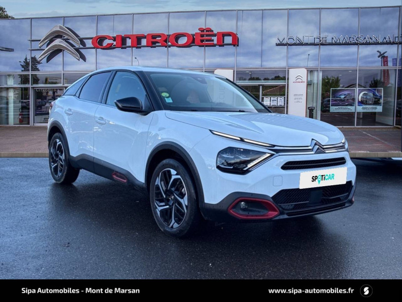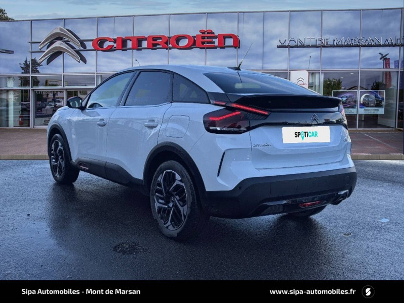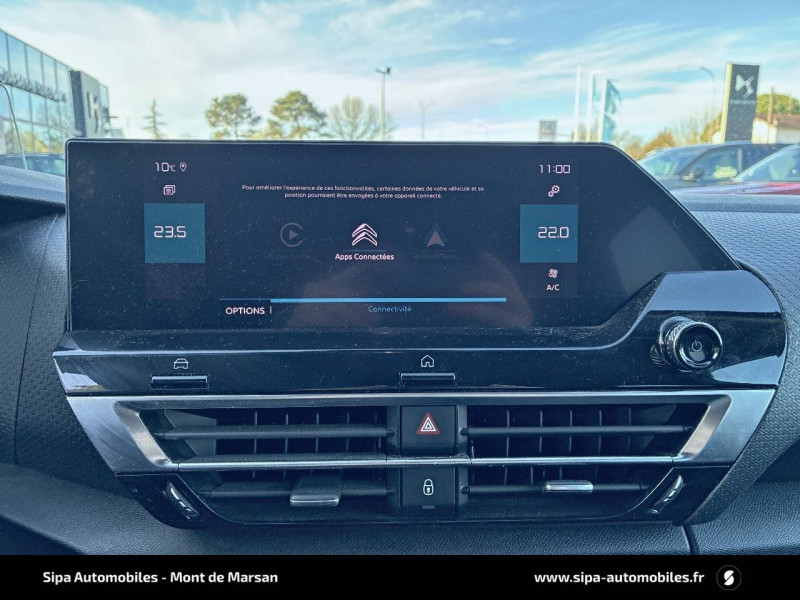1 prise USB en rang 2 (type A) / 2 prises USB au rang 1 (1 type C + 1 type A) / ABS avec REF, AFU et ESP / Aérateurs centraux en rang 2 / Citroën Connect Radio numérique sur tablette tactile 10" / Combiné numérique couleur / Connect Assist : Citroën Connect Box avec Pack SOS et assistance inclus / Connect Play : Mirror Screen / Console centrale haute avec rangements et accoudoir / Détection de sous-gonflage / Elargisseurs d'aile et bas de caisse Noir Mat / Enjoliveurs 18" AEROTECH / Frein de stationnement électrique automatique / Jupe AR Noir Brilliant / Kit de dépannage provisoire de pneumatiques / Pack Color Glossy Black / Pack Safety / Poignées de portes extérieures Noir Brillant / Prise 12V en rang 1 / Projecteurs antibrouillard LED avec éclairage statique d'intersection / Projecteurs LED avec signature lumineuse en V / Siège conducteur avec réglage lombaire / Suspension Citroën Advanced Comfort / Système audio numérique (DAB) MP3 6 HP / Tissu Meanwhile/Tissu Noir