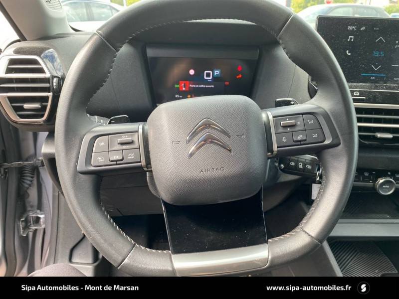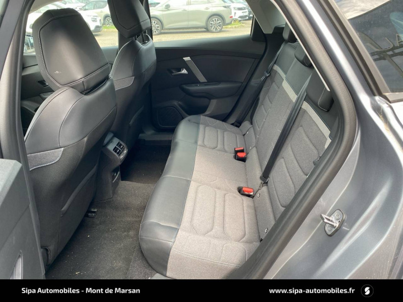 1 prise USB en rang 2 (type A) / 2 prises USB au rang 1 (1 type C + 1 type A) / ABS avec REF, AFU et ESP / Aérateurs centraux en rang 2 / Boîtier télématique : Appel d'urgence et Citroën Assistance les services Connect ONE pendant une période de 10 ans / Combiné numérique couleur / Console centrale haute avec rangements et accoudoir / Détection de sous-gonflage / Elargisseurs d'aile et bas de caisse Noir Mat / Frein de stationnement électrique automatique / Garnissage Tissu Chevrons Gris/ Toile enduite Noir Ambiance Urban Grey + Sièges Advanced Comfort / Jantes alliage 18" AEROBLADE Gris Anthra / Jupe AR Noir Brilliant / Kit de dépannage provisoire de pneumatiques / Pack Color Noir Brillant / Pack Safety - Active Safety Brake - Alerte active de Franchissement Involontaire de Ligne - Alerte Attention Conducteur - Alerte Risque Collision - Coffee Break Alert - Reconnaissance des panneaux de vitesse et recommandation - Régulateur-limiteur de vitesse - Témoin de non-bouclage des ceintures de sécurité conducteur et passagers / Plancher de coffre à 2 positions / Poche aumonière au dos des sièges AV / Poignées de portes extérieures couleur caisse / Prise 12 V en rang 1 / Projecteurs antibrouillard LED avec éclairage statique d'intersection / Projecteurs LED avec signature lumineuse en V / Sièges Advanced Comfort / Suspension Citroën Advanced Comfort / Système audio numérique 6 HP (DAB)